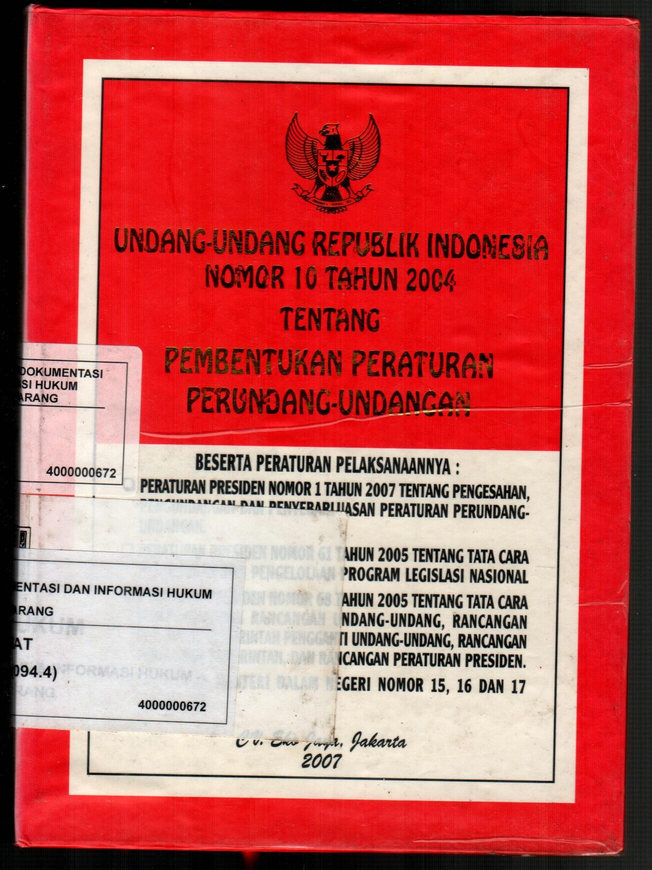 Undang-Undang Republik Indonesia Nomor 10 Tahun 2004 Tentang Pembentukan Peraturan Perundang-undangan