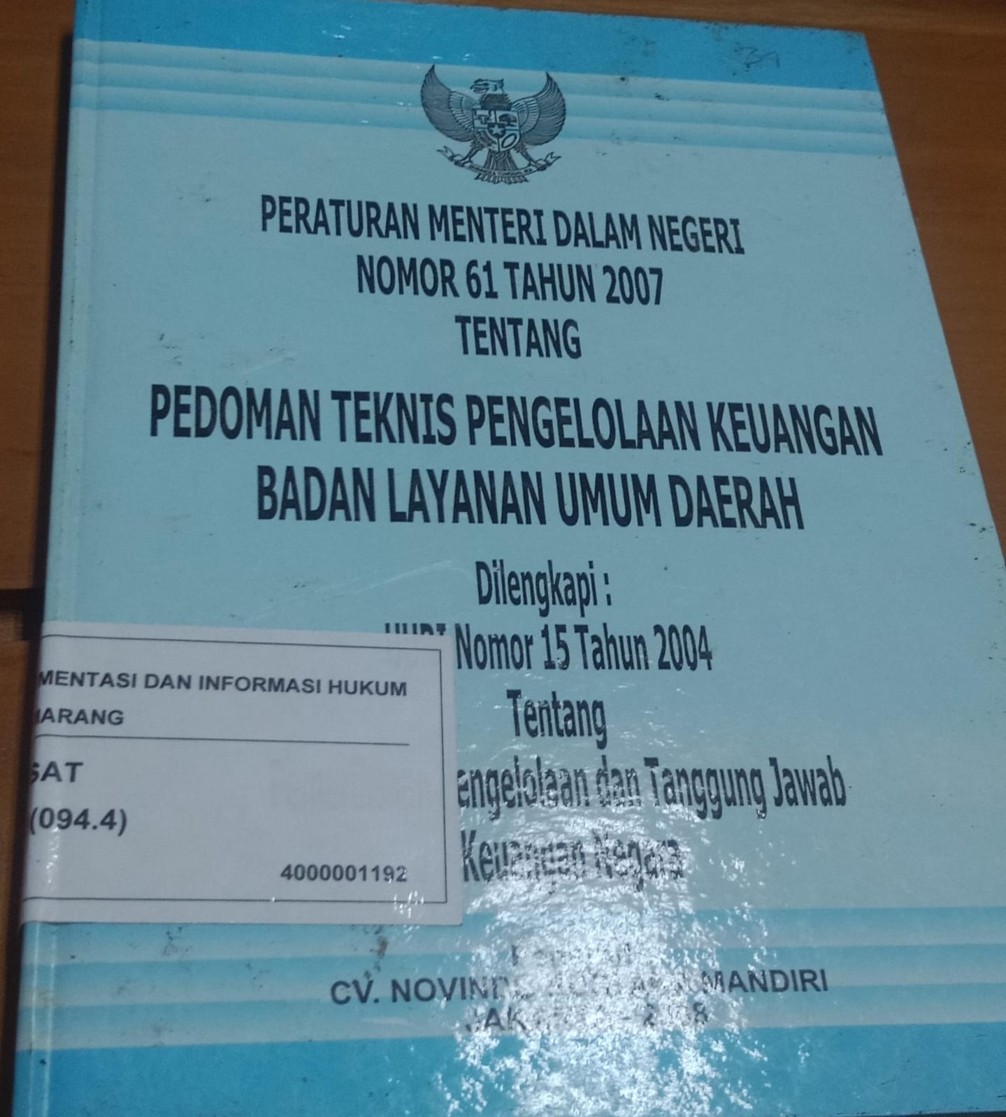 PERATURAN MENTERI DALAM NEGERI NOMOR 61 TAHUN 2007 TENTANG PEDOMAN TEKNIS PENGELOLAAN KEUANGAN BADAN LAYANAN UMUM DAERAH