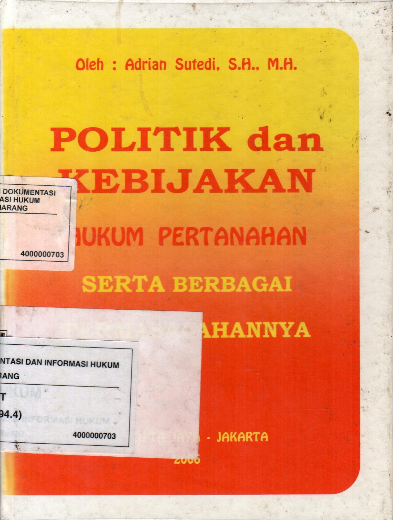 Politik Dan Kebijakan Hukum Pertanahann Serta Berbagai Permasalahanya