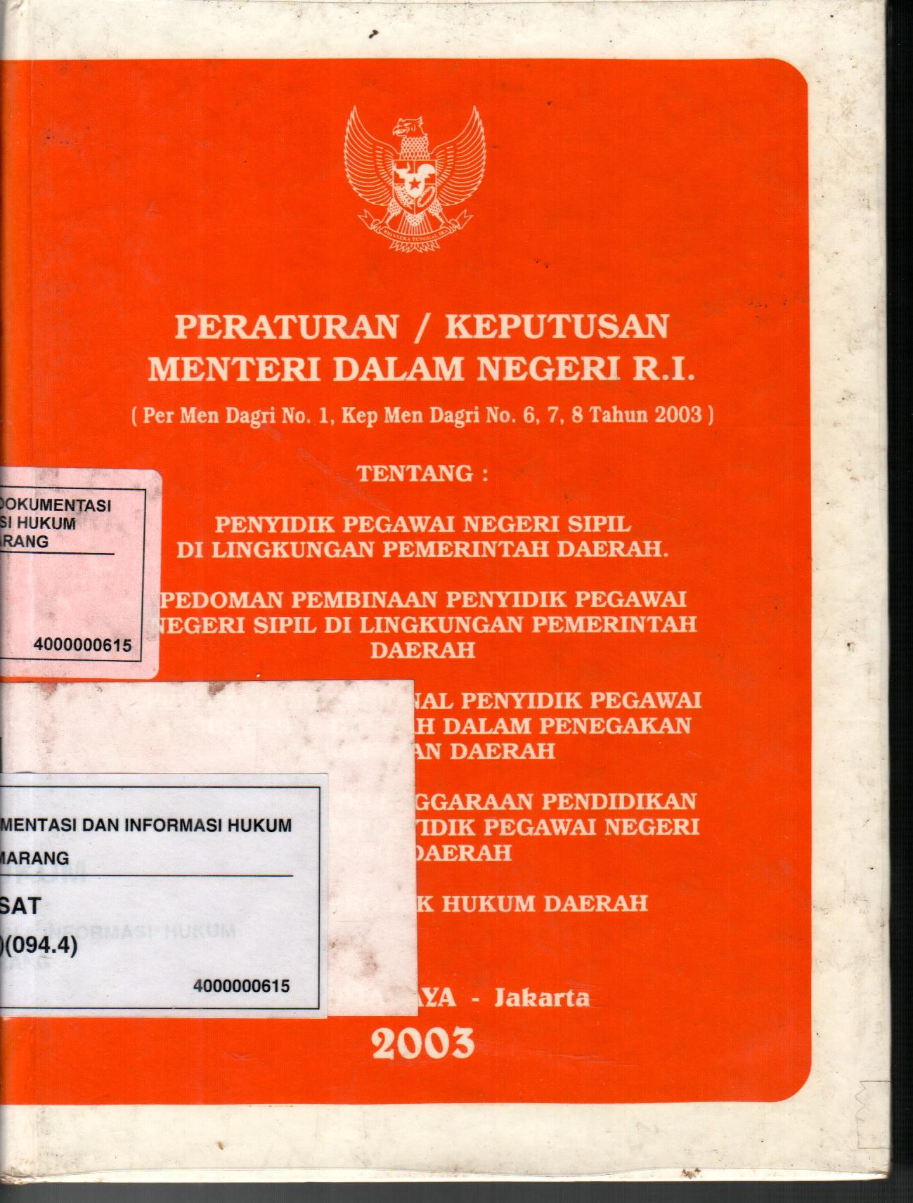 Peraturan/Keputusan Menteri Dalam Negeri R.I. (Per Men Dagri No.1,Kep Men Dagri No. 6, 7, 8 Tahun 2003)