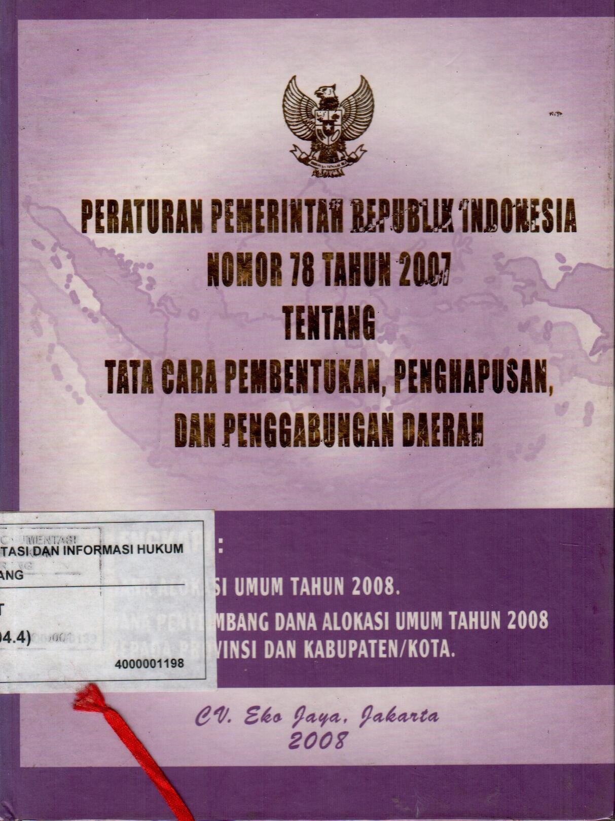 peraturan pemerintah republik indonesia no 78 tahun 2007 tentang tata cara pembentukan, penghapusan, dan penggabungan daerah