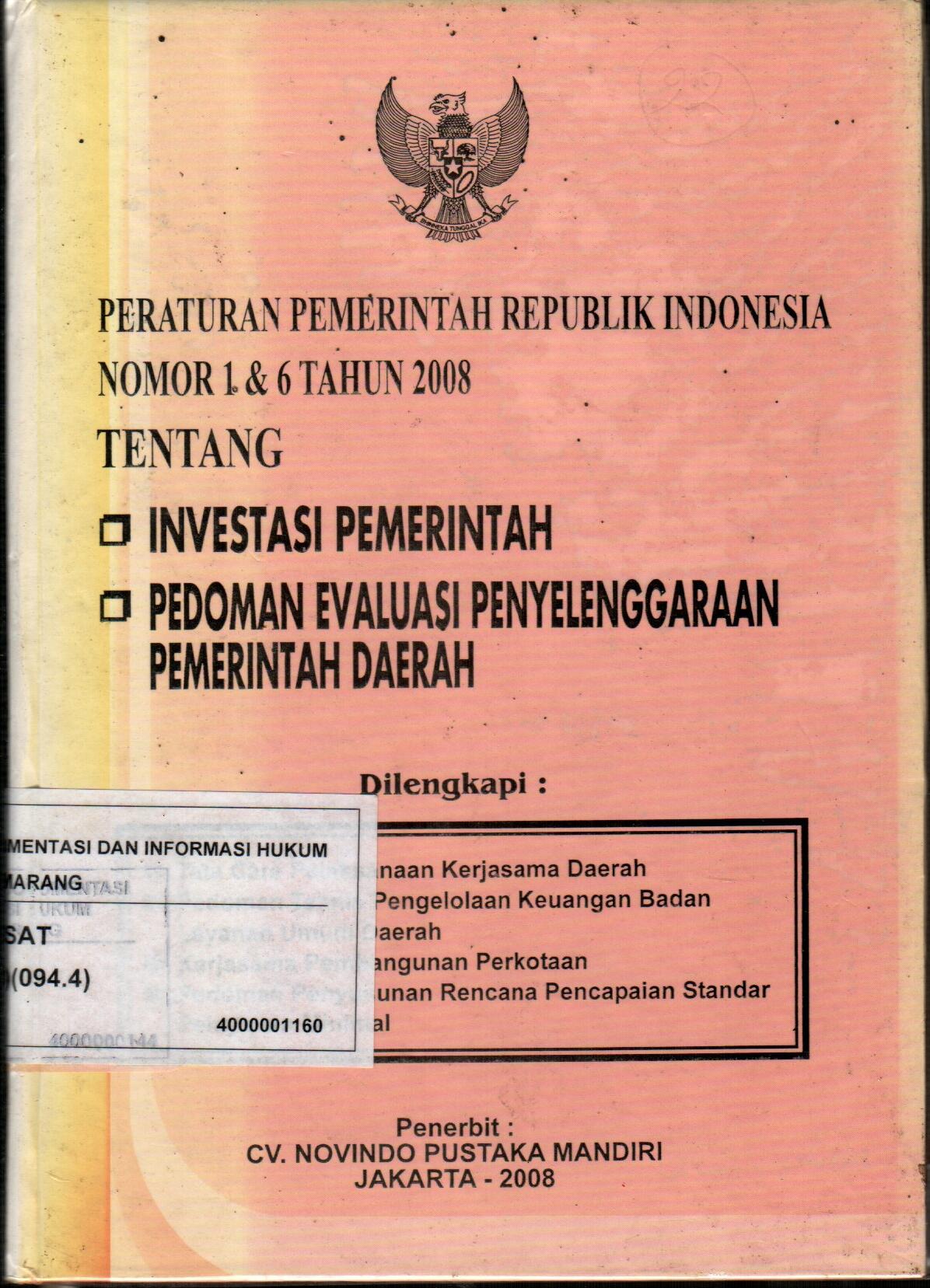 Peraturan Pemerintah Republik Indonesia Nomor 1&6 Tahun 2008 Tentang Investasi Pemerintah,Pedoman Evaluasi Penyelenggaraan Pemerintah Daerah