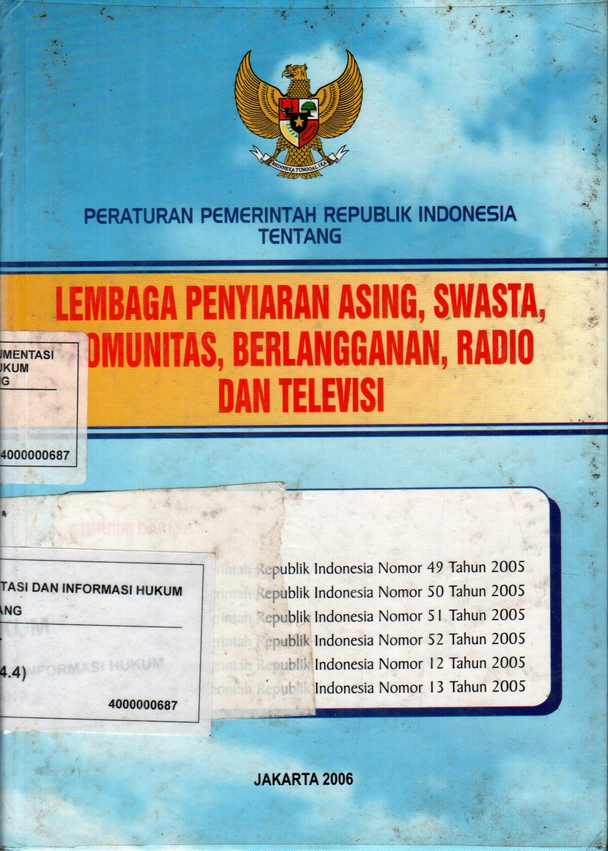 Peraturan Pemerintah Republik Indonesia Tentang Lembaga Penyiaran Asing, Swasta, Komunitas, Berlangganan, Radio Dan Televisi