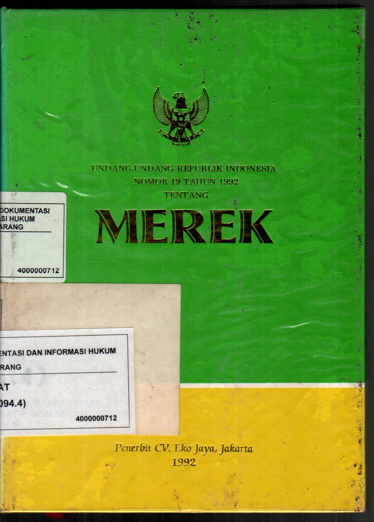 Undang-Undang Republik Indonesia Nomor 19 Tahun 1992 Tentang Merek