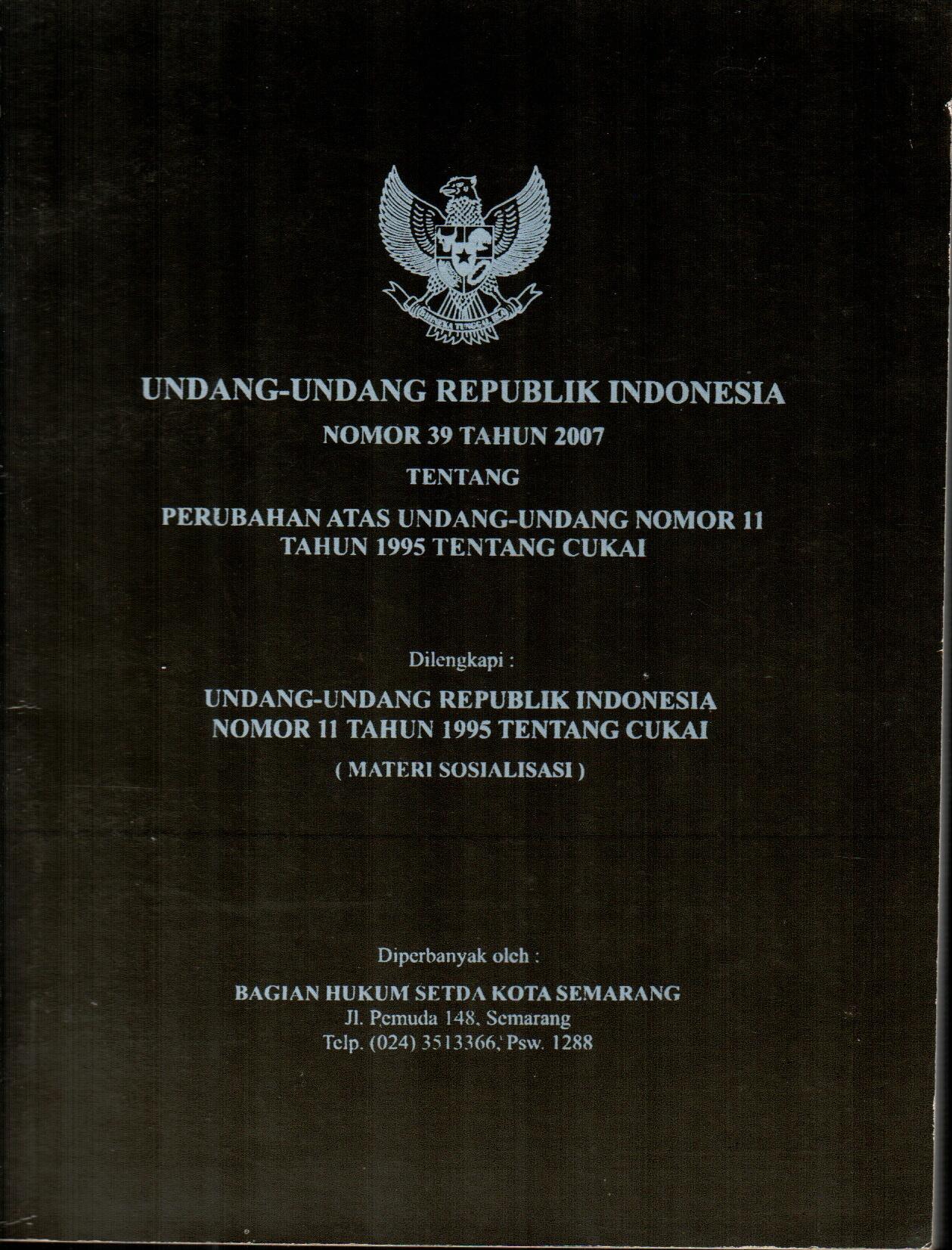 Undang-Undang Republik Indonesia Nomor 39 Tahun 2007 Tentang Perubahan Atas Undang-Undang Nomor 11 Tahun 1995 Tentang Cukai