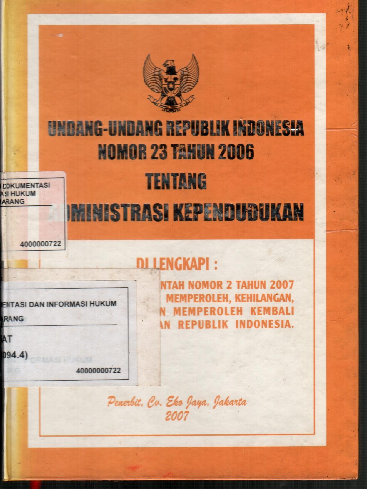 UNDANG-UNDANG REPUBLIK INDONESIA NOMOR 23 TAHUN 2006 TENTANG ADMINISTRASI KEPENDUDUKAN