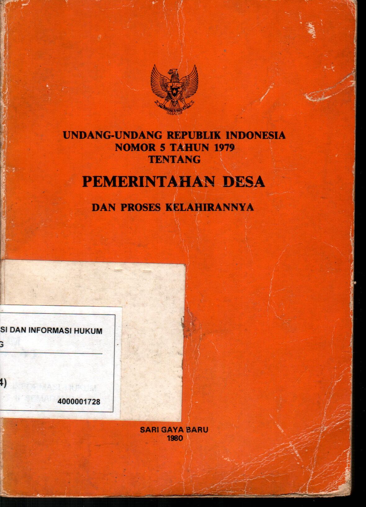UNDANG-UNDANG REPUBLIK INDONESIA NOMOR 5 TAHUN 1979 TENTANG PEMERINTAHAN DESA DAN PROSES KELAHIRANNYA