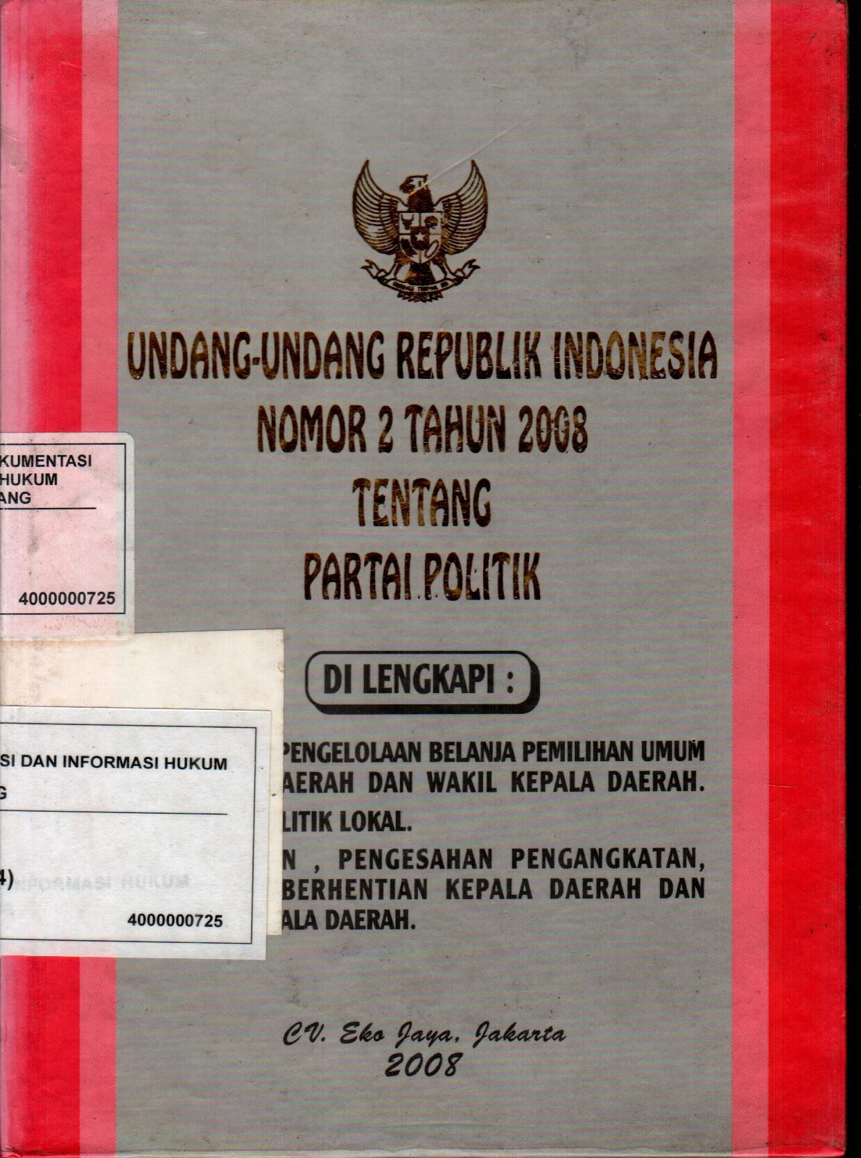 Undang-Undang Republik Indonesia Nomor 2 Tahun 2008 Tentang Partai Politik