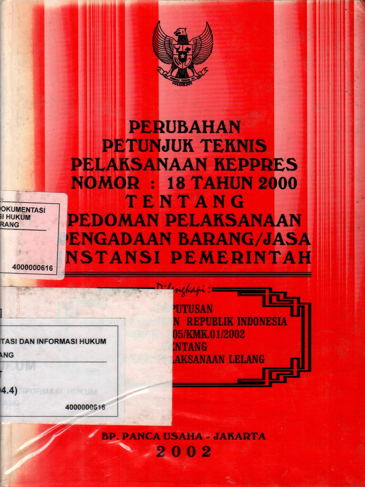 Perubahan Petunjuk Teknis Pelaksanaan Keppres Nomor: 18 Tahun 2000 Tentang Pedoman Pelaksanaan Pengadaan Barang/Jasa Instansi Pemerintah