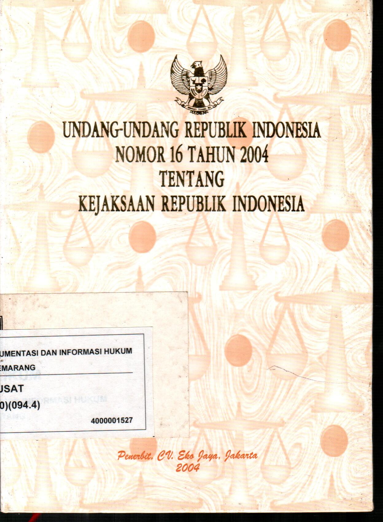 UNDANG-UNDANG REPUBLIK INDONESIA NOMOR 16 TAHUN 2004 TENTANG KEJAKSAAN REPUBLIK INDONESIA