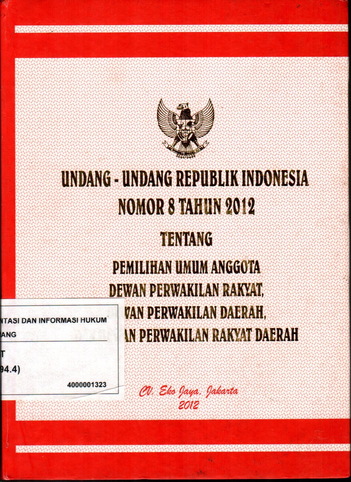 Undang-Undang Republik Indonesia Nomor 8 Tahun 2012 Tentang Pemilihan Umum Anggota Dewan Perwakilan Rakyat, Dewan Perwakilan Daerah, Dewan Perwakilan Rakyat Daerah
