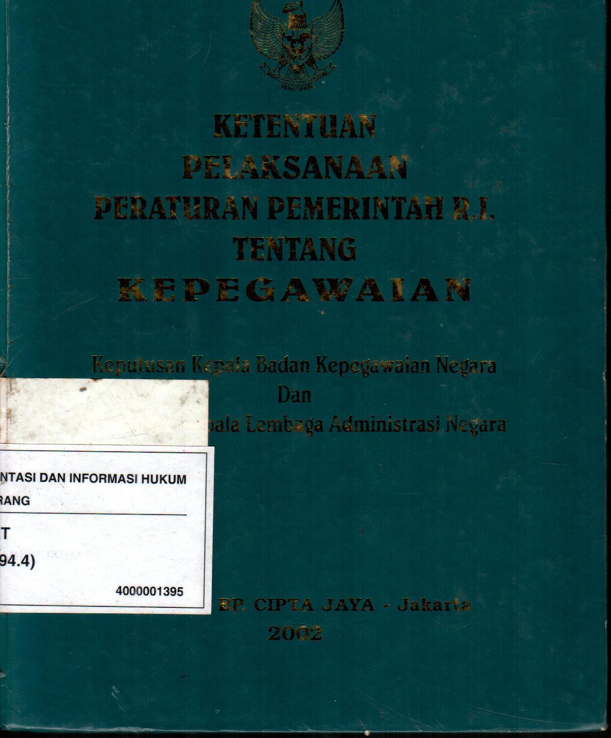 Ketentuan Pelaksana Peraturan Pemerintah R.I. Tentang Kepegawaian Keputusan Kepala Bagian Badan Kepegawaian Negara Dan Keputusan Kepala Lembaga Administrasi Negara