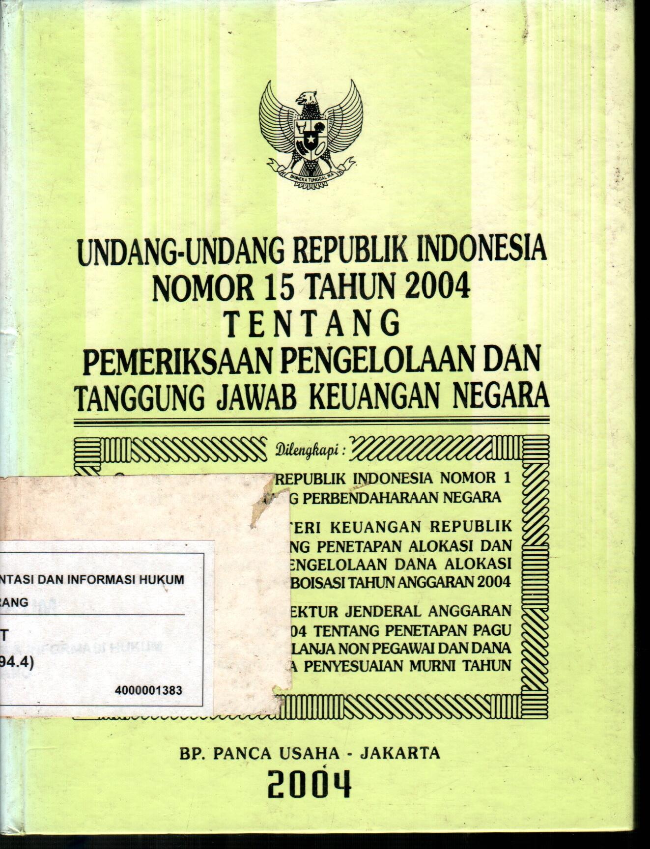 UNDANG-UNDANG REPUBLIK INDONESIA NOMOR 15 TAHUN 2004 TENTANG PEMERIKSAAN PENGELOLAAN DAN TANGGUNG JAWAB KEUANGAN NEGARA