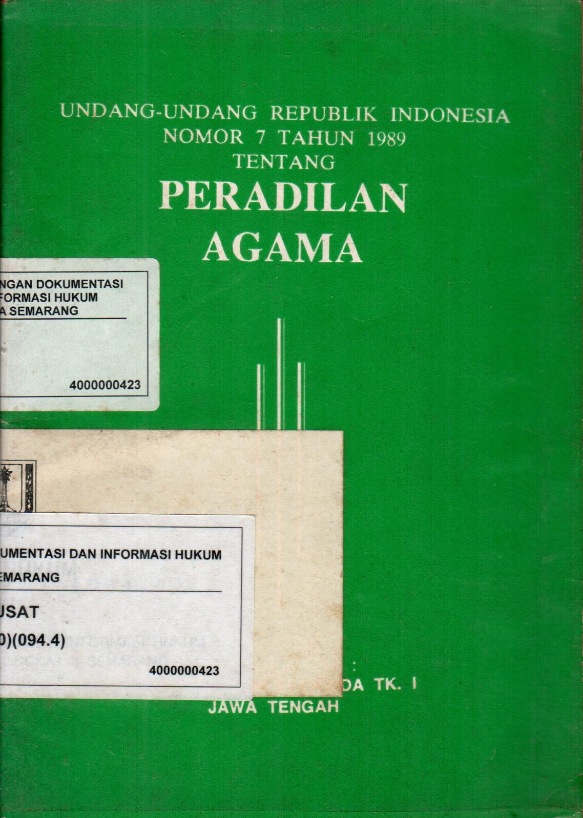 Undang-Undang Republik Indonesia Nomor 7 Tahun 1989 Tentang Peradilan Agama