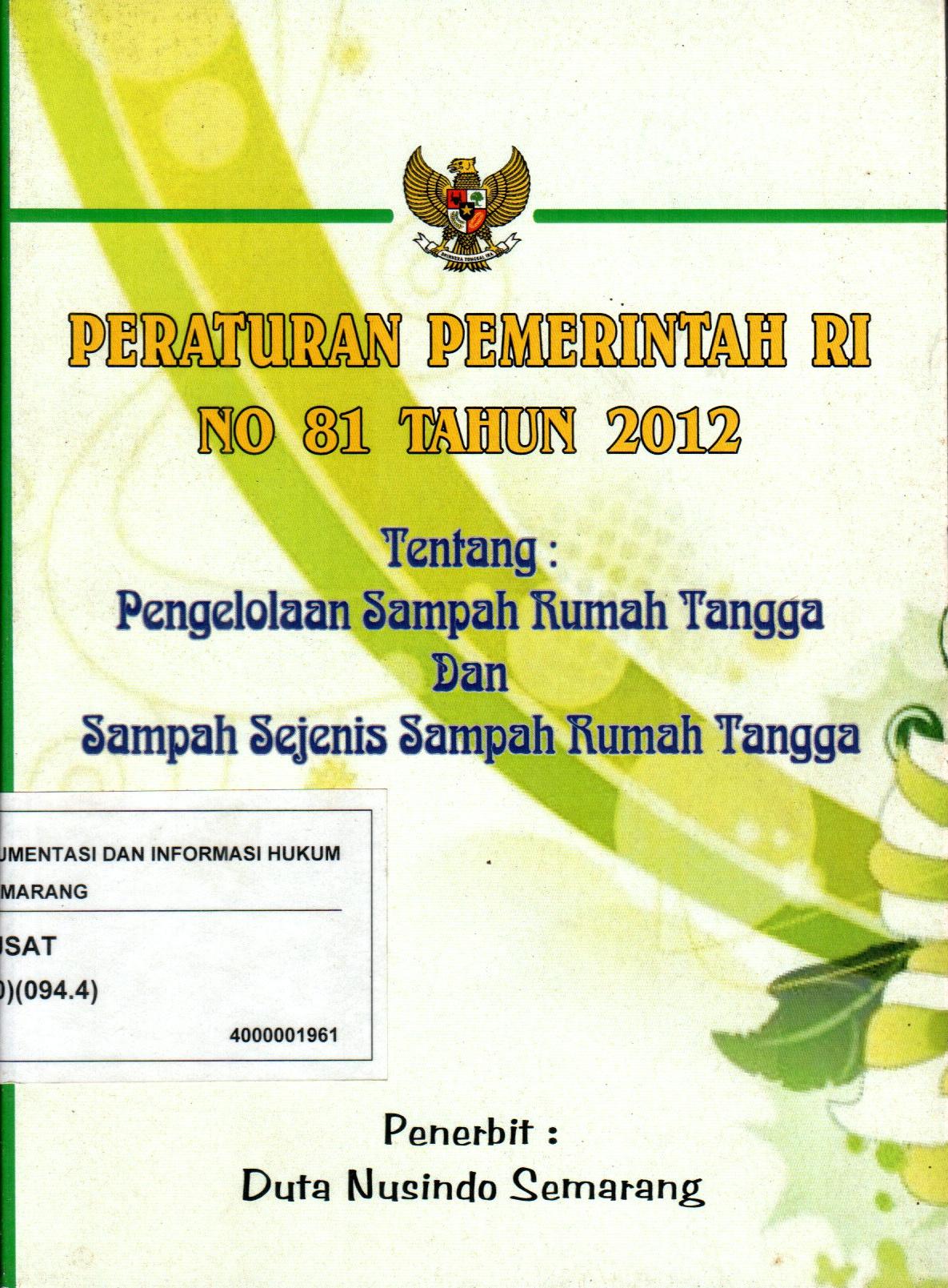 Peraturan Pemerintah RI No 81 Tahun 2012 Tentang Pengelolaan Sampah Rumah Tangga dan Sampah Sejenis Sampah Rumah Tangga
