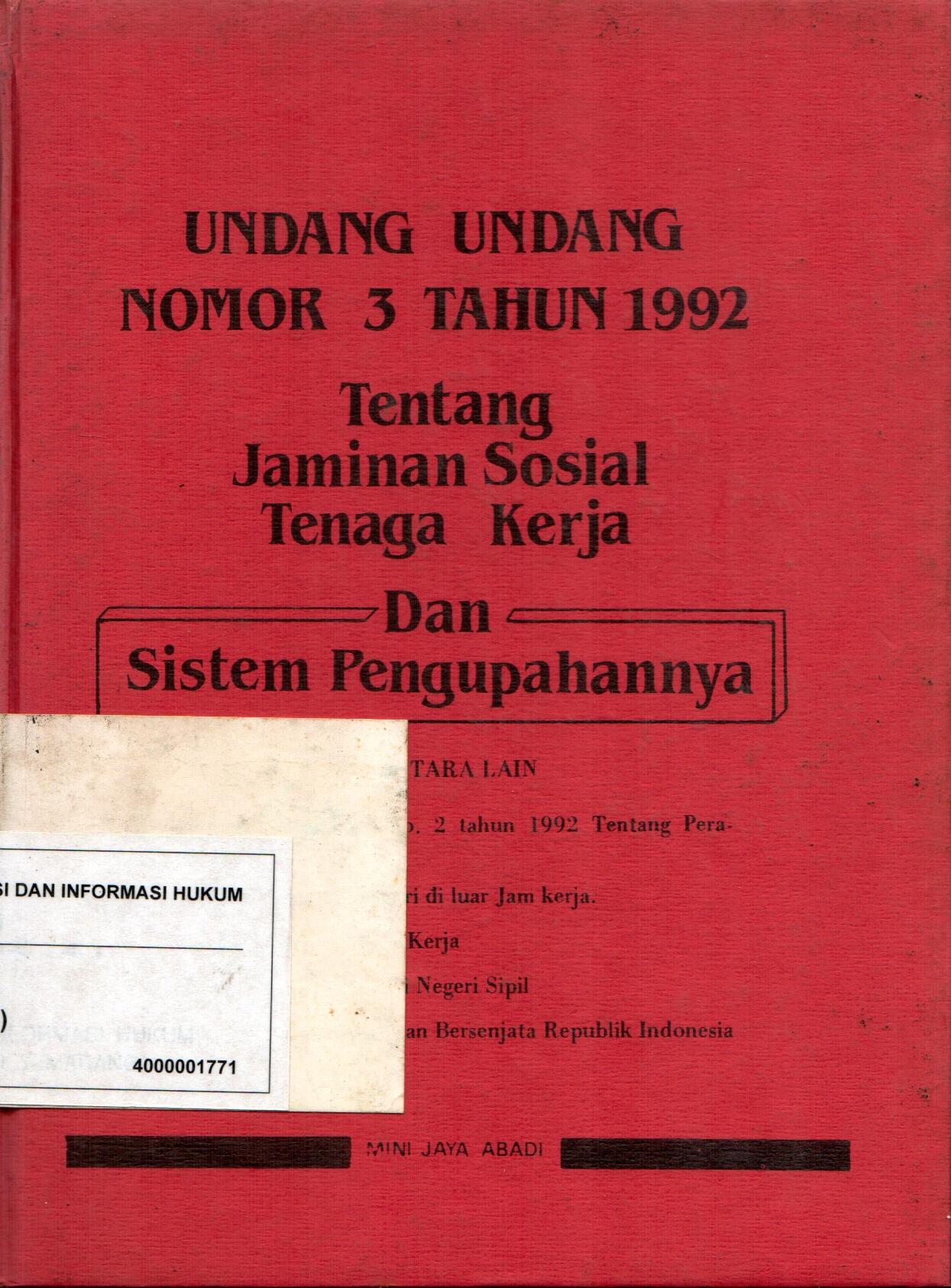 Undang-undang Nomor 3 Tahun 1992 Tentang Jaminan Sosial Tenaga Kerja dan Sistem Pengupahannya