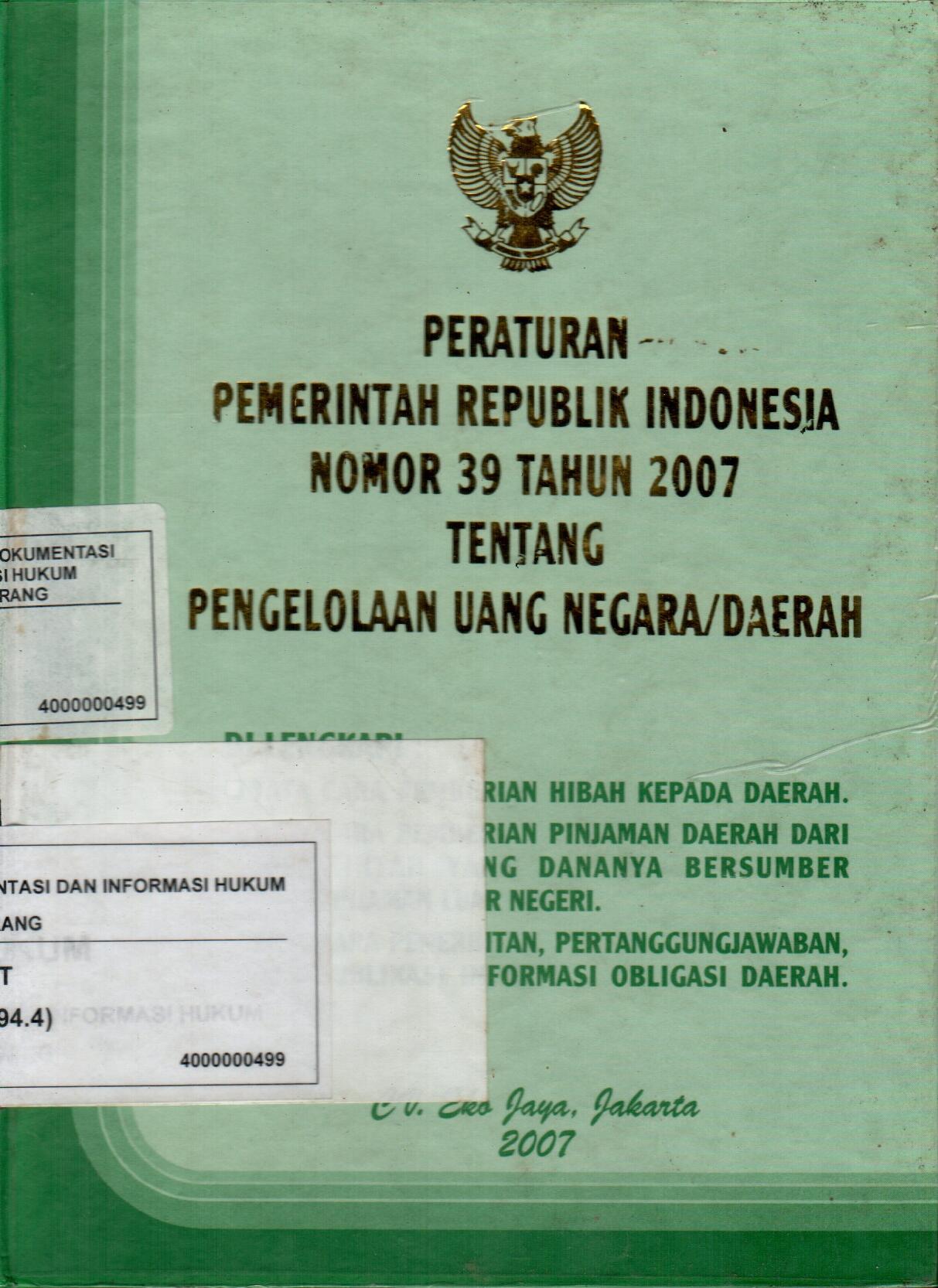 Peraturan Pemerintah Republik Indonesia Nomor 39 Tahun 2007 Tentang Pengelolaan Uang Negara/Daerah