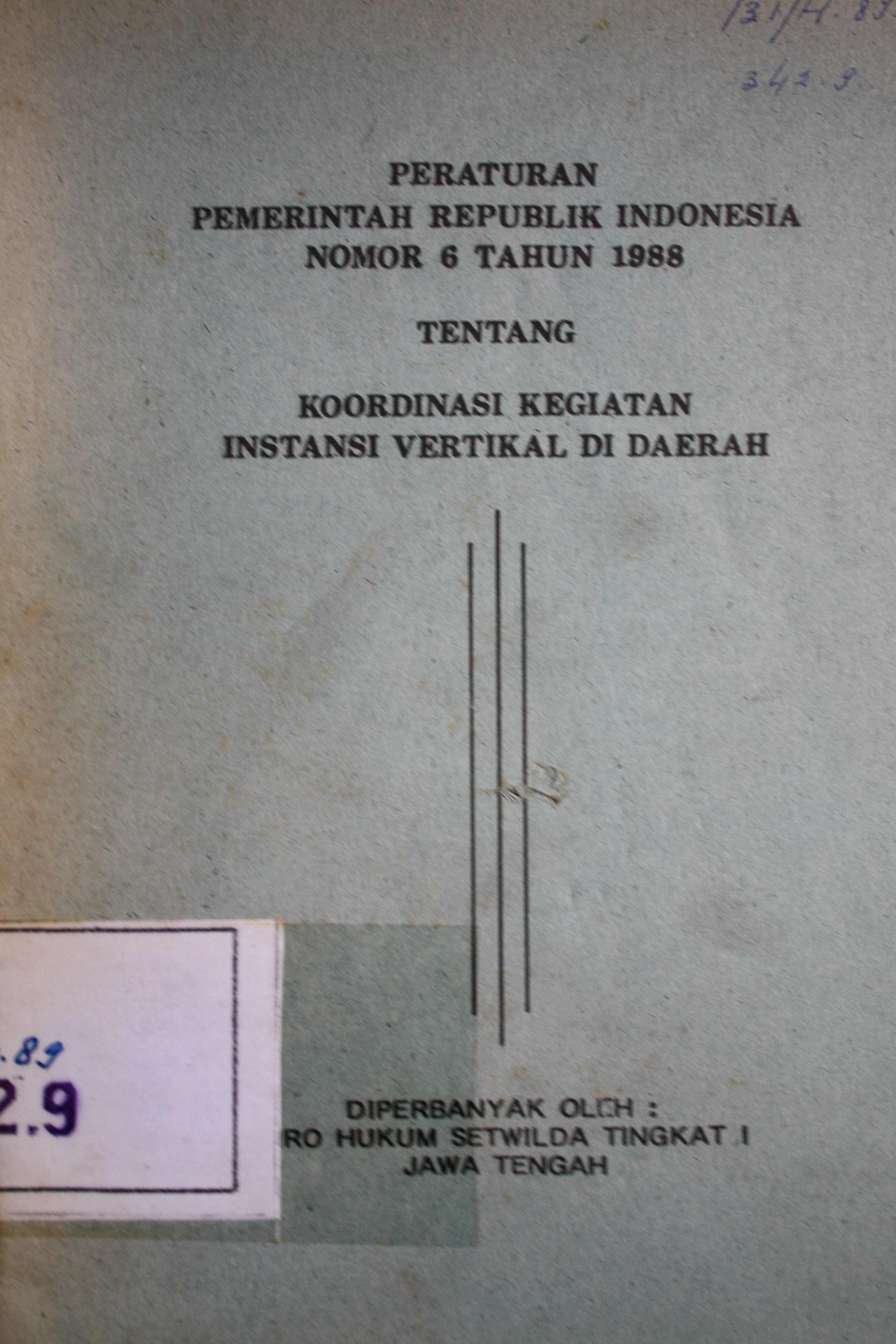 Peraturan Pemerintahj Republik Indonesia Nomor 6 Tahun 1988 Tentang Koordinasi Kegiatan Instansi Vertikal Di Daerah