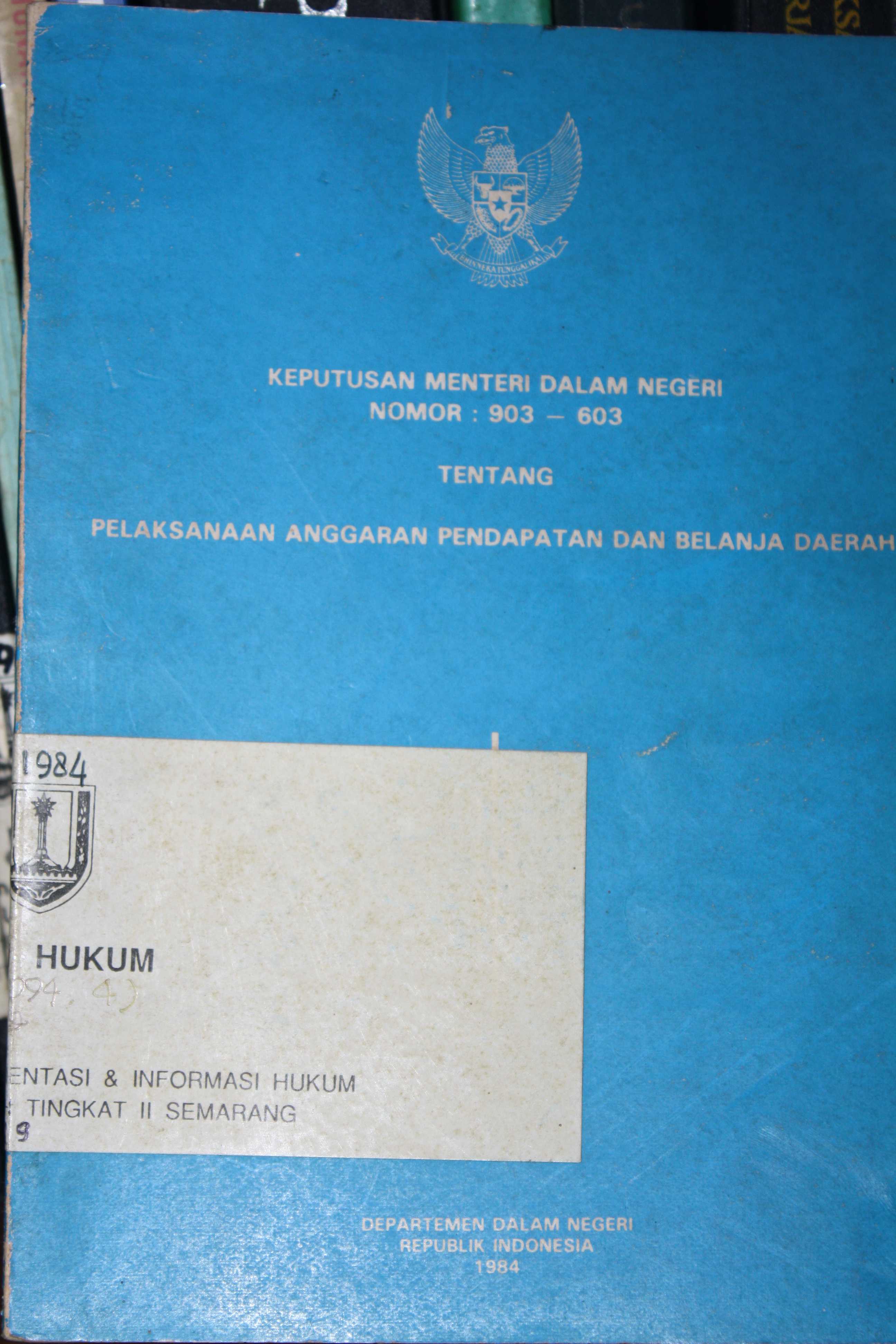 Keputusan Menteri Dalam Negeri Nomor : 903 - 603 Tentang Pelaksanaan Anggaran Pendapatan dan belanja daerah