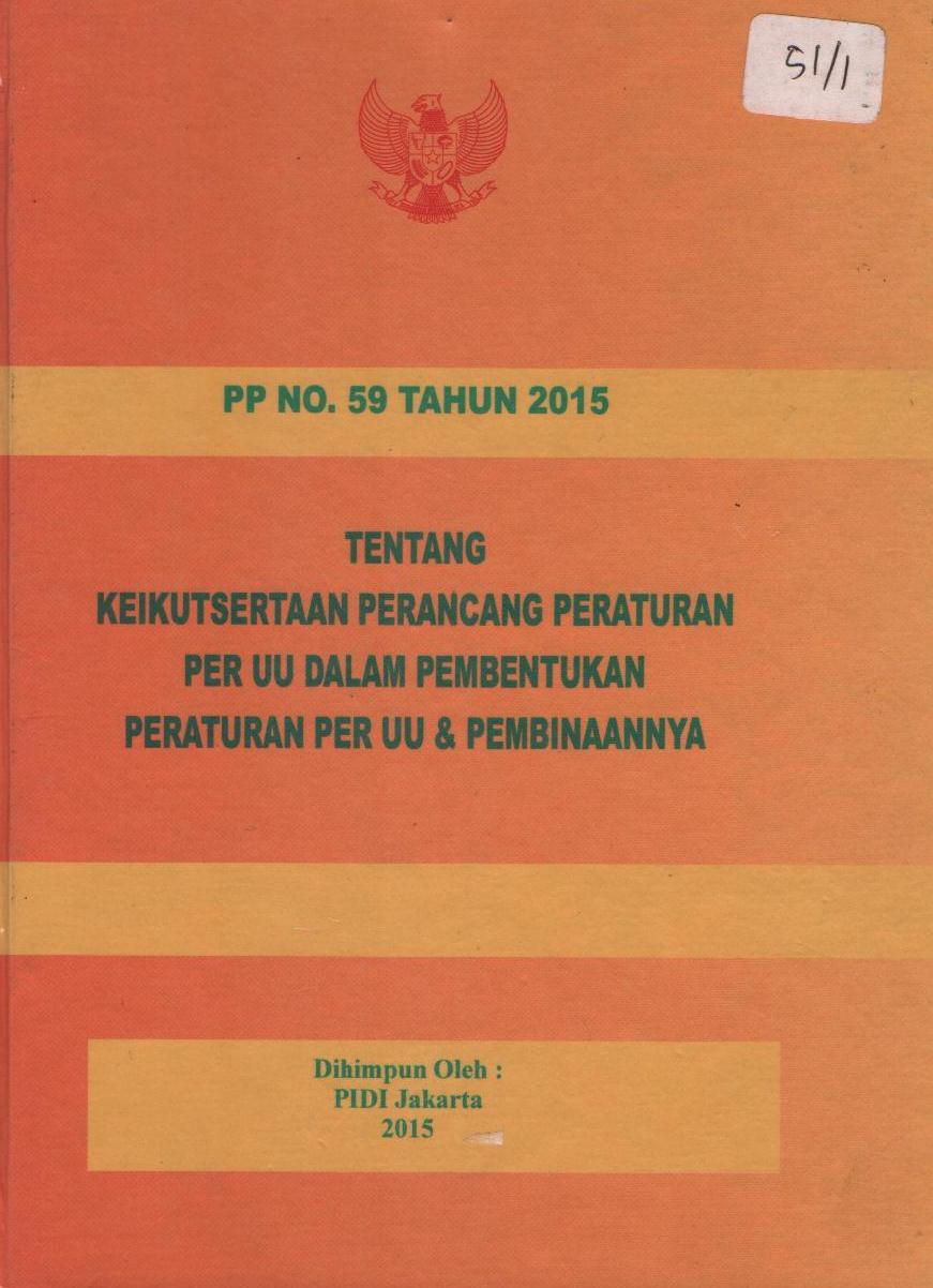 PP No. 59 Tahun 2015 Tentang Keikutsertaan Perancang Peraturan Per UU Dalam Pembentukan Peraturan Per UU & Pembinaanya