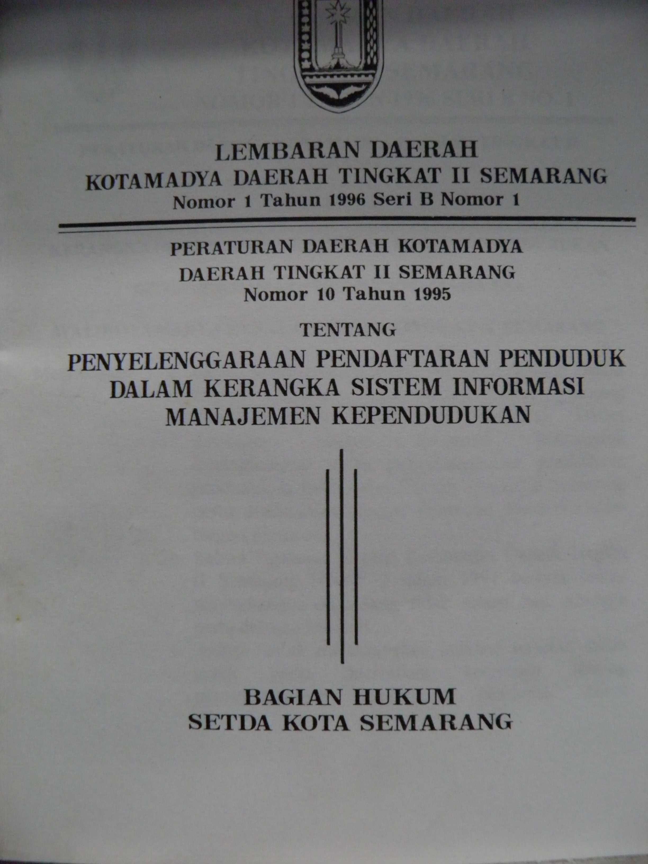 Peraturan Daerah Kotamadya Daerah Tingkat II Semarang Nomor : 10 Tahun 1995