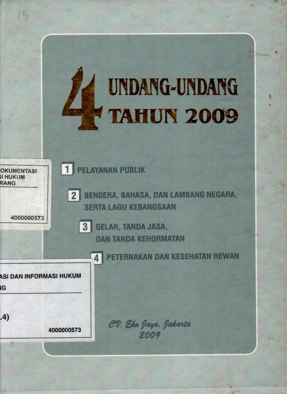 4 Undang-Undang Tahun 2009 Pelayanan Publik, Bendera, Bahasa, Dan Lambang Negara, Serta Lagu Kebangsaan, Gelar, Tanda Jasa, Dan Tanda Kehormatan, Peternakan Dan Kesehatan Hewan