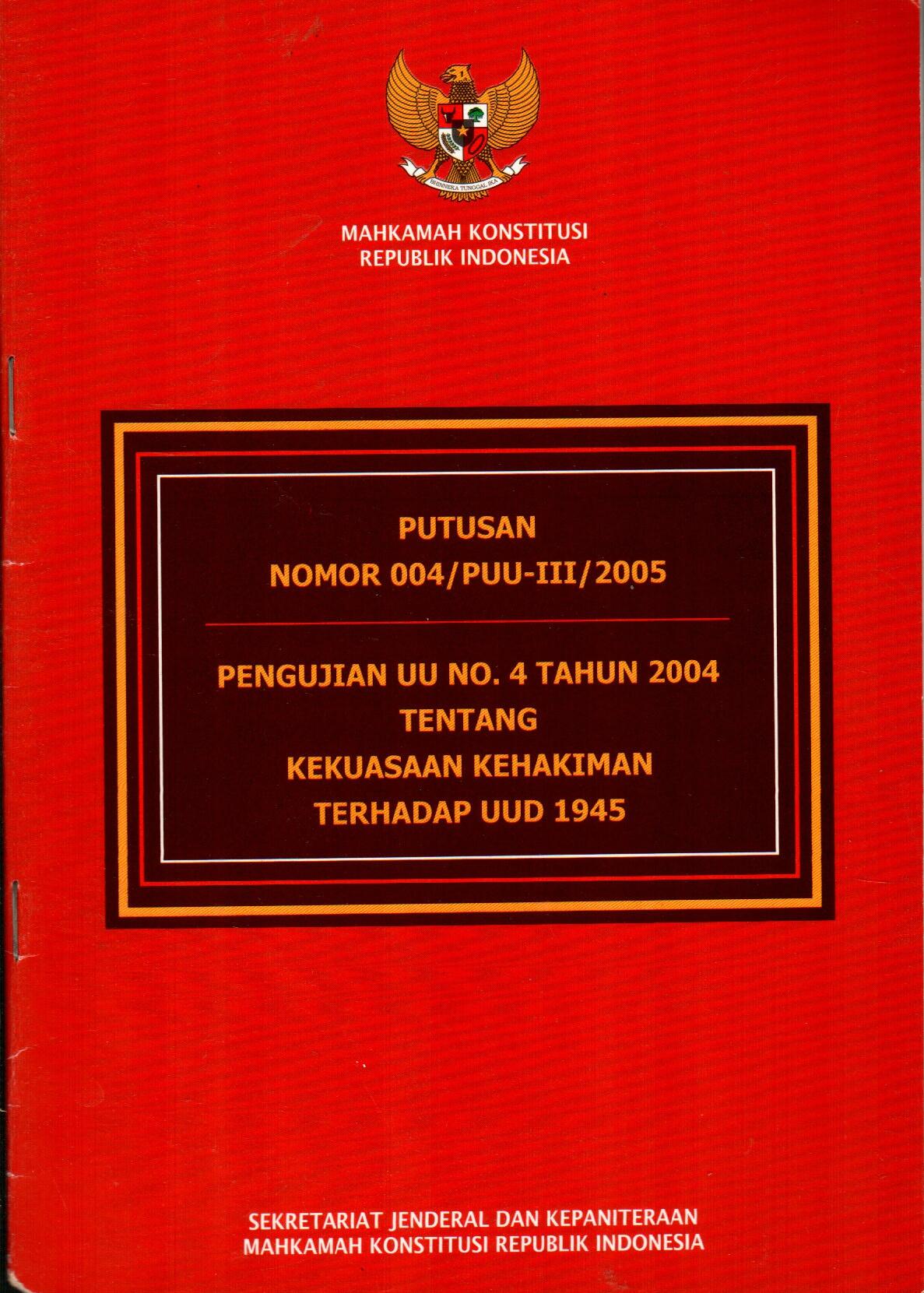 Putusan Nomor 004/PUU-III/2005 Pengujian UU No. 4 Tahun 2004 Tentang Kekuasaan Kehakiman Terhadap UUD 1945