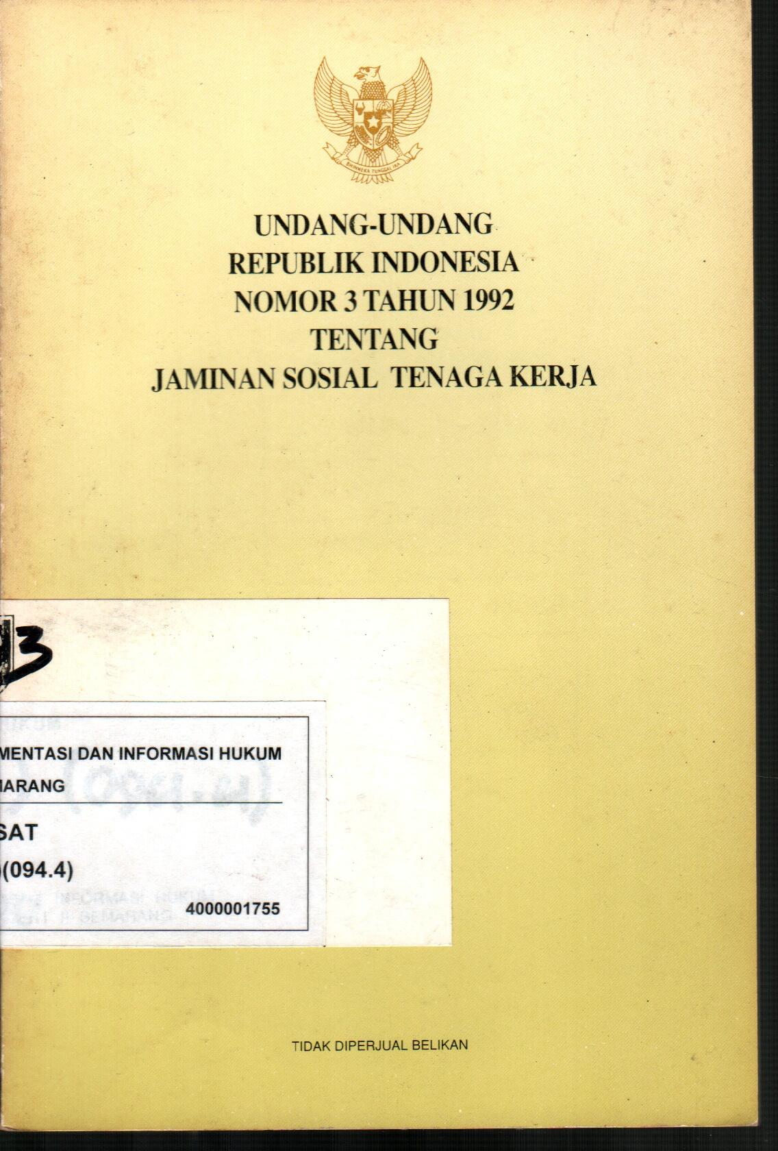 Undang-Undang Republik Indonesia Nomor 3 Tahun 1992 Tentang Jaminan Sosial Tenaga Kerja