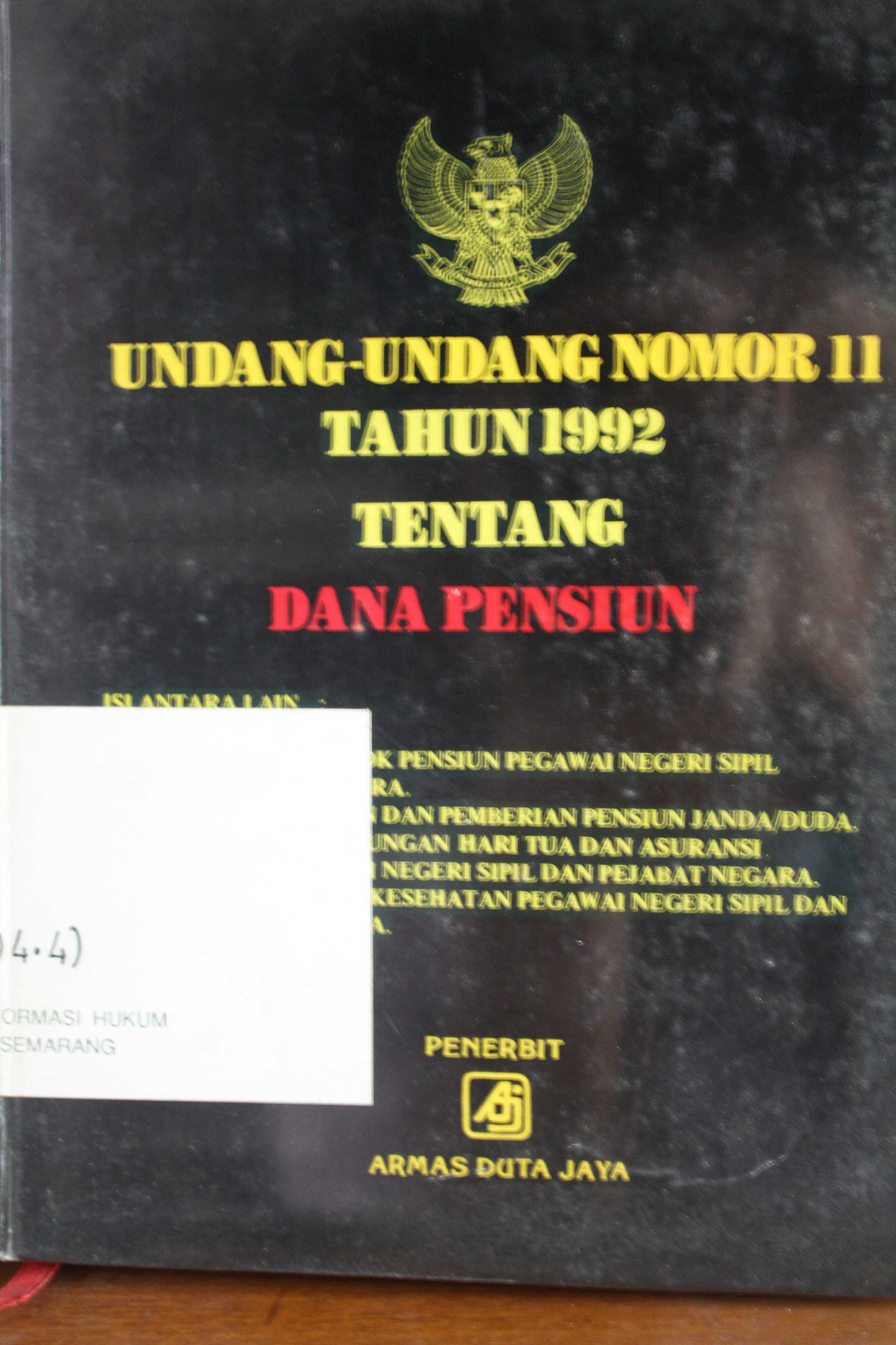 Undang - undang Republik Indonesia Nomor 11 Tahun 2002 Tentang Dana Pensiun