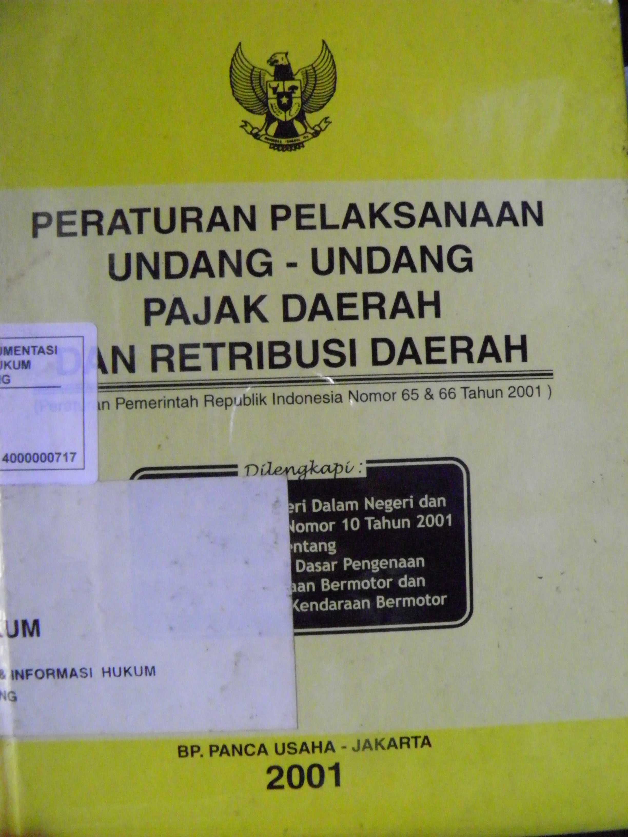Peraturan Pelaksanaan Undang - Undang Pajak Daerah Dan Retyribusi Daerah (Peraturan Pemerintah Republik Indonesia Nomor 65 dan 66 Tahun 2001)