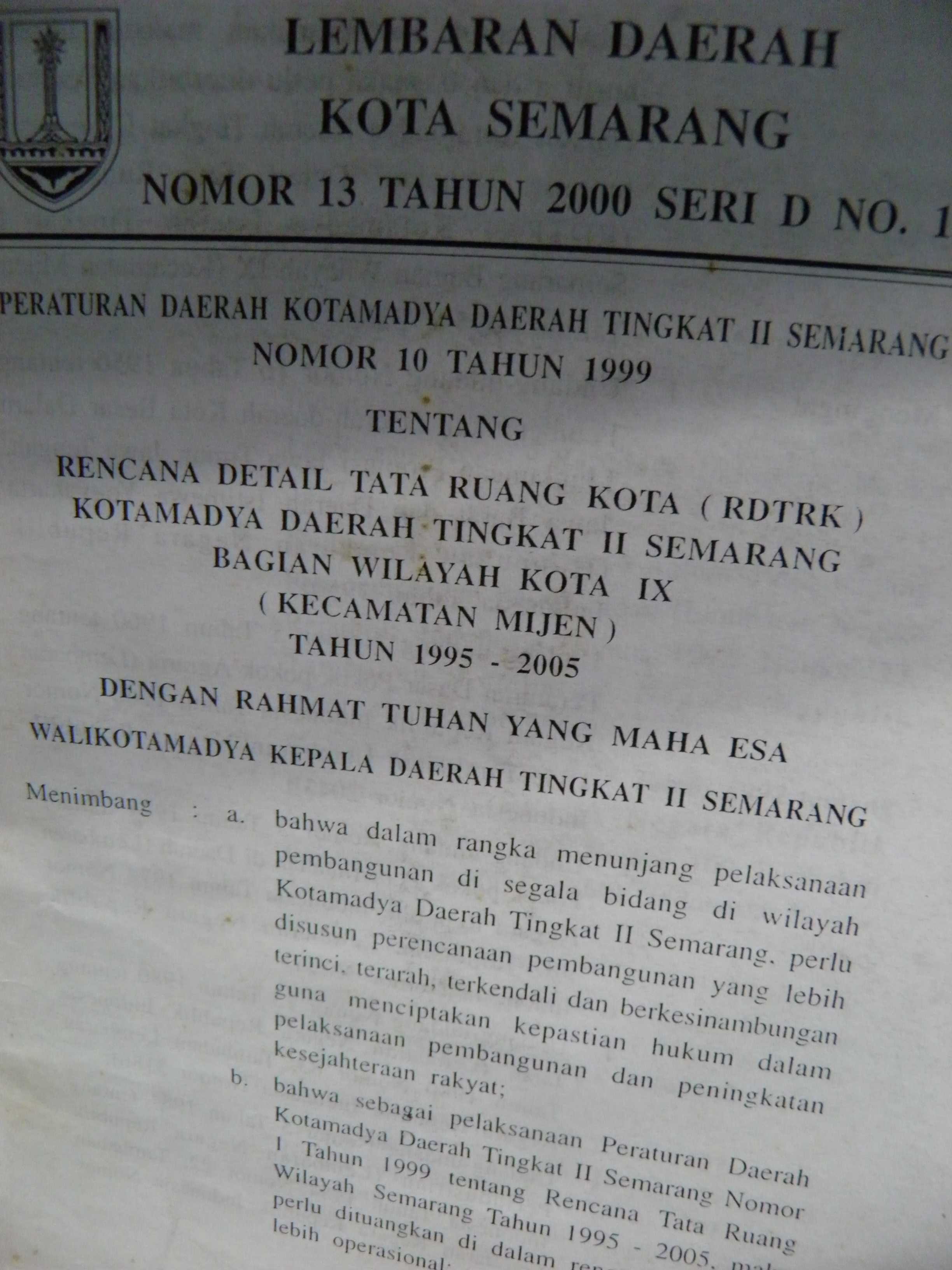 Peraturan Daerah Kotamadya Daerah Tingkat II Semarang Nomor : 10 Tahun 1999