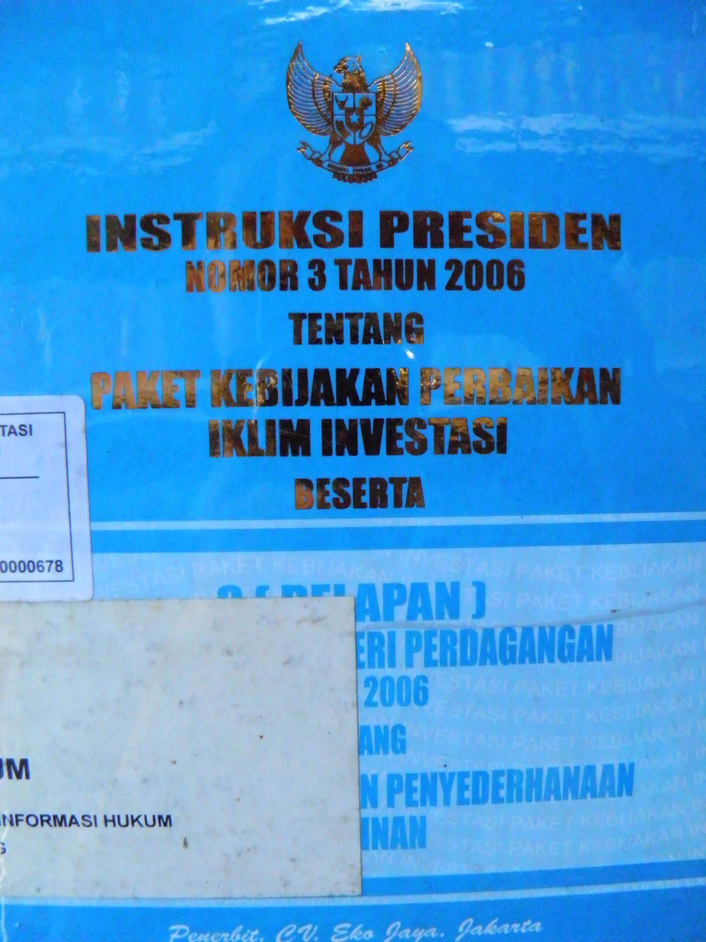 Instruksi Presiden Nomor 3 Tahun 2006 Tentang Paket Kebijakan Perbaikan Iklim Investasi Beserta 8 (Delapan ) Peraturan Menteri Perdagangan Tahun 2006 Tentang Penyempurnaan Dan Penyerderhanaan Perizina