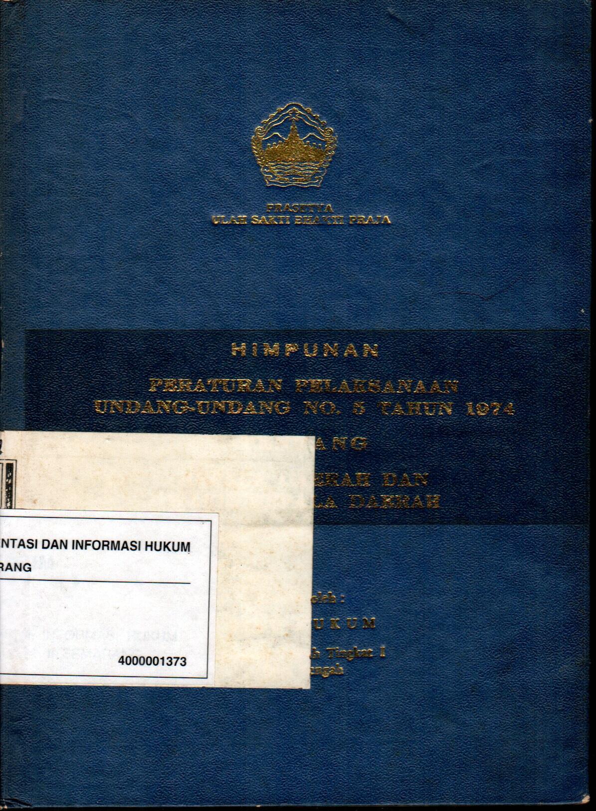 Himpunan Peraturan Pelaksanaan Undang - Undang No. 5 Tahun 1974 Tentang Kepala Daerah dan Wakil Kepala Daerah