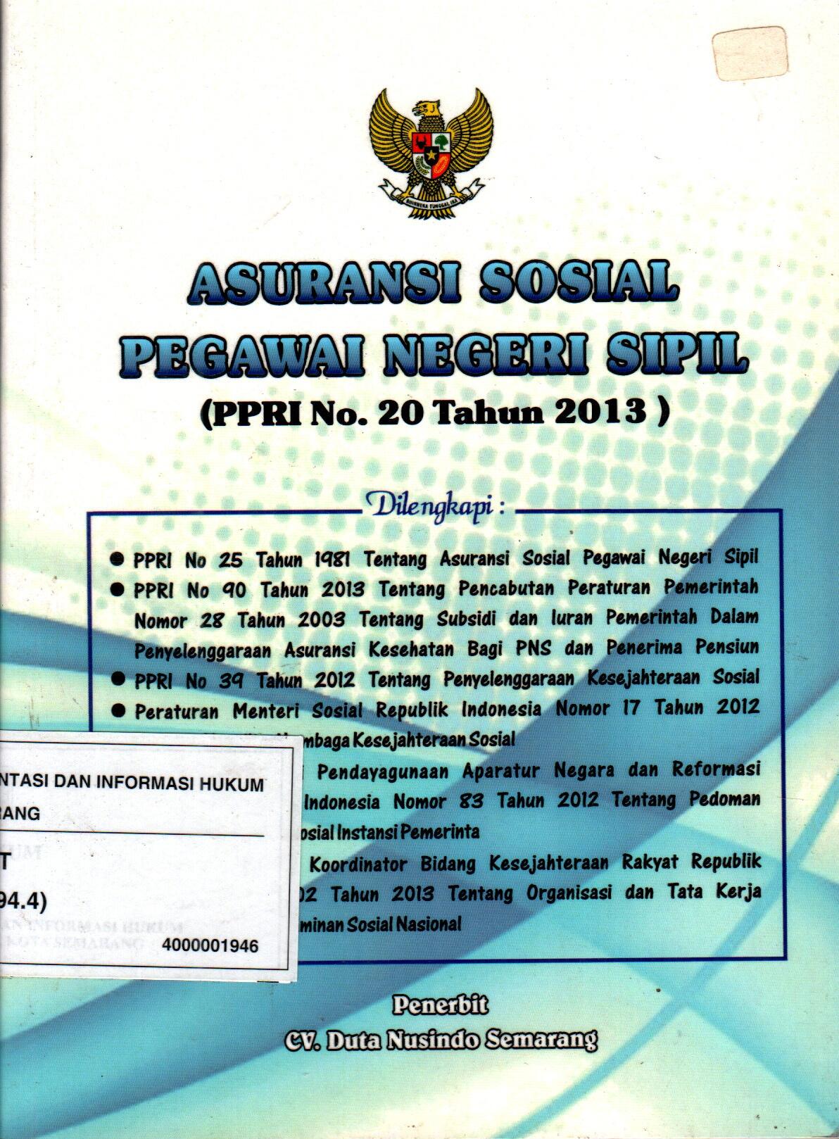 Asuransi Sosial Pegawai Negeri Sipil (PPRI No. 20 Tahun 2013)