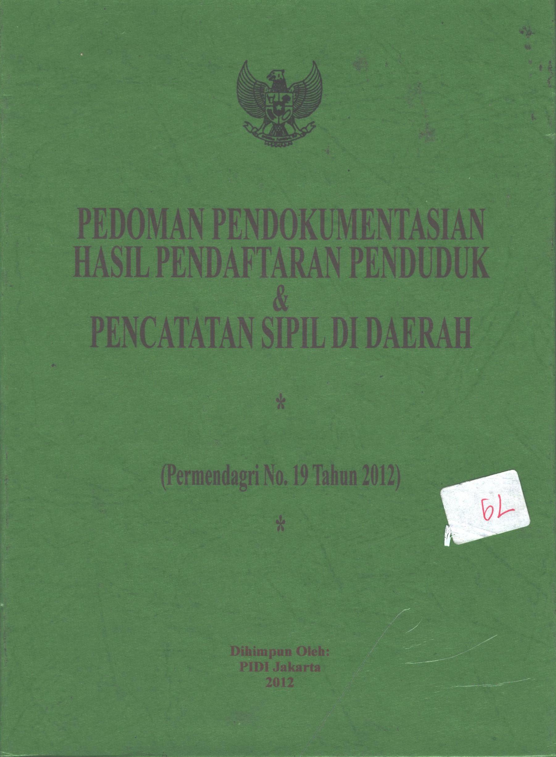 Pedoman Pendokumentasian Hasil Pendaftaran Penduduk Dan Pencatatan Sipil Di Daerah ( Pemendagri No.19 2012)