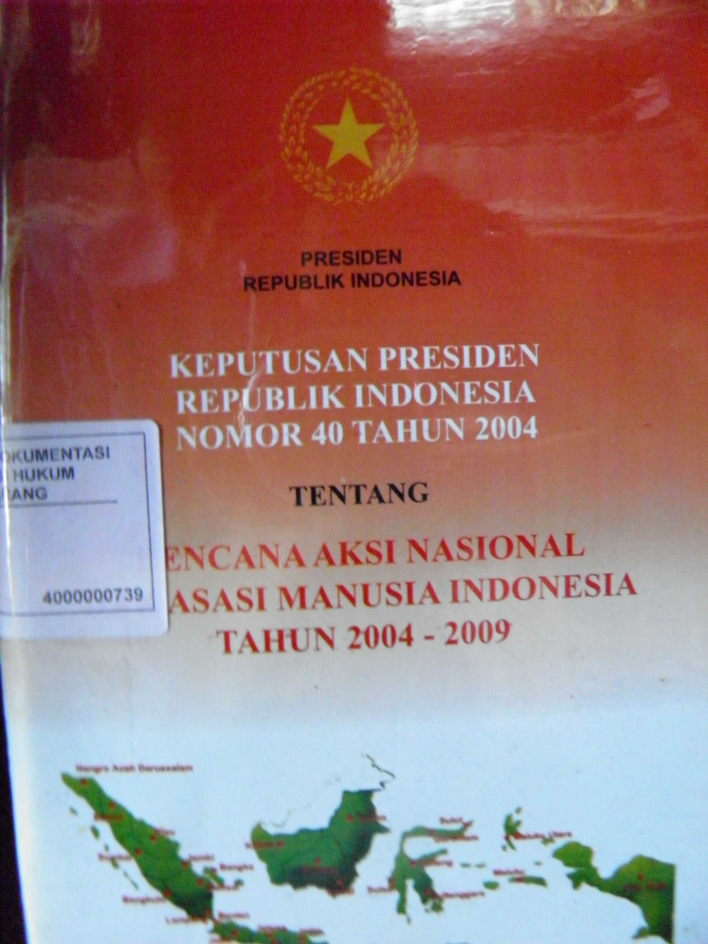 Keputusan Presiden Republik Indonesia Nomor 40 Tahun 2004 Tentang Bencana Aksi Nasional Asasi Manusia Indonesia Tahun 2004 - 2009
