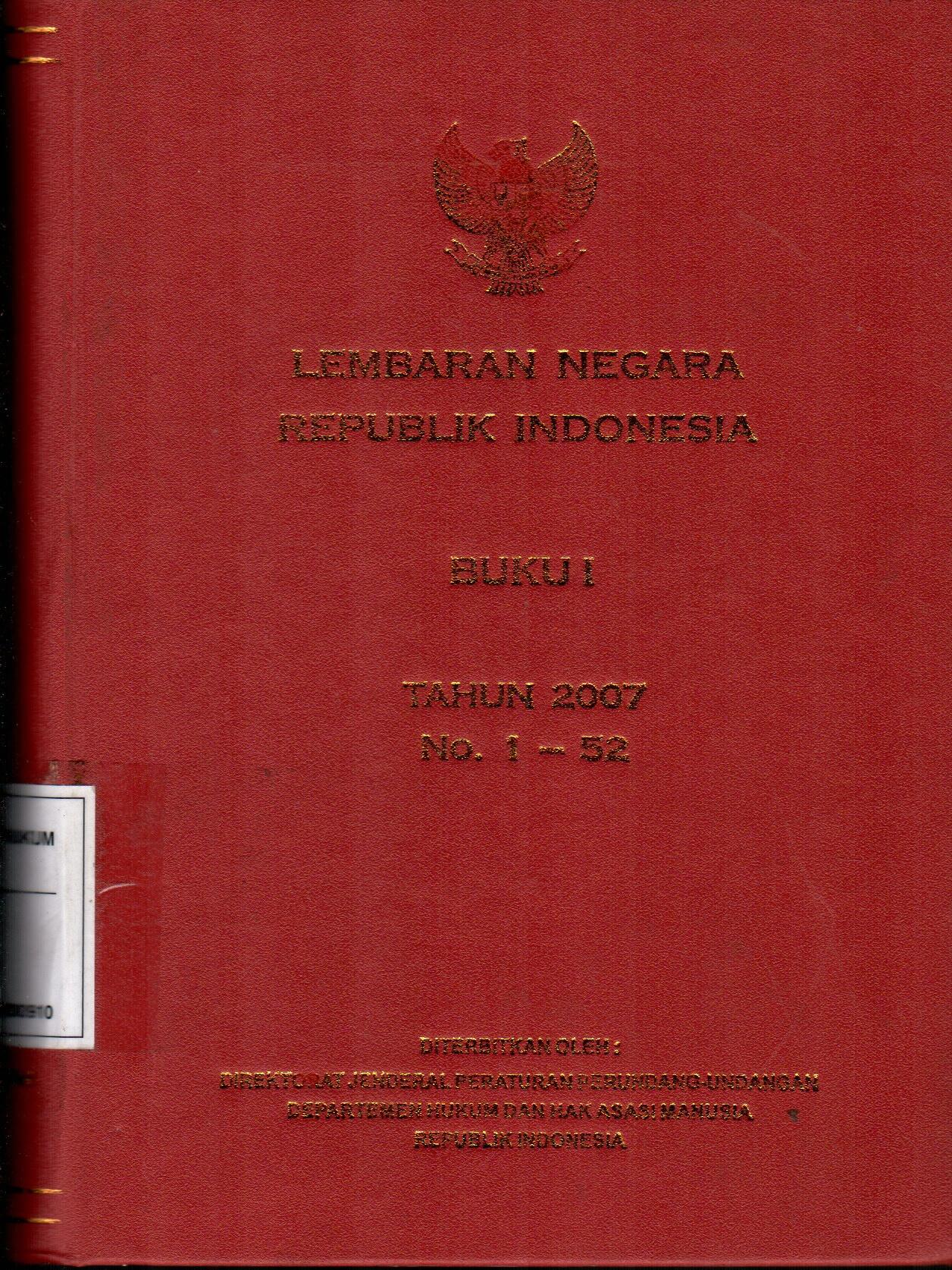 Lembaran Negara Republik Indonesia Buku I Tahun 2007 No. 1-52