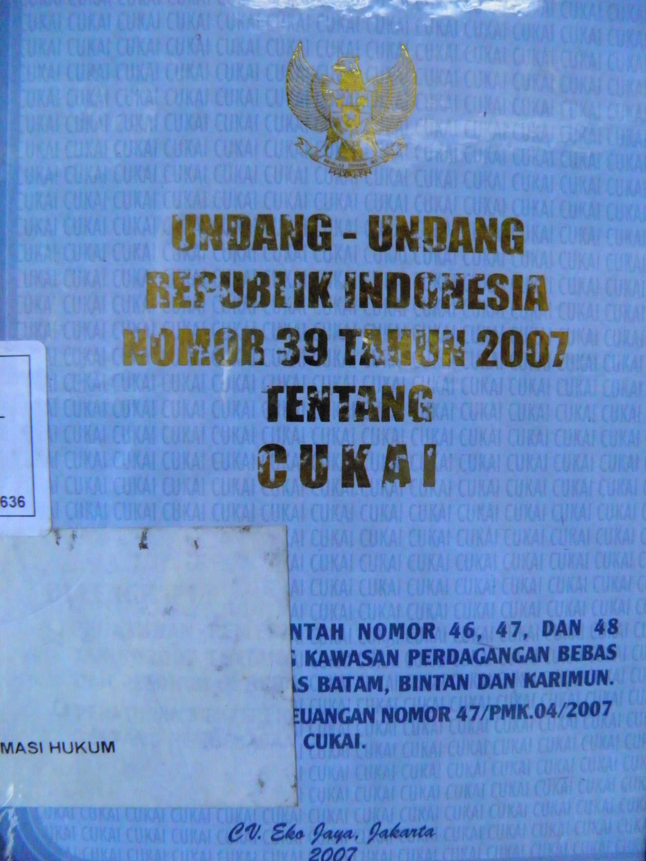 Undang - Undang Republik Indonesia Tentang Cukai