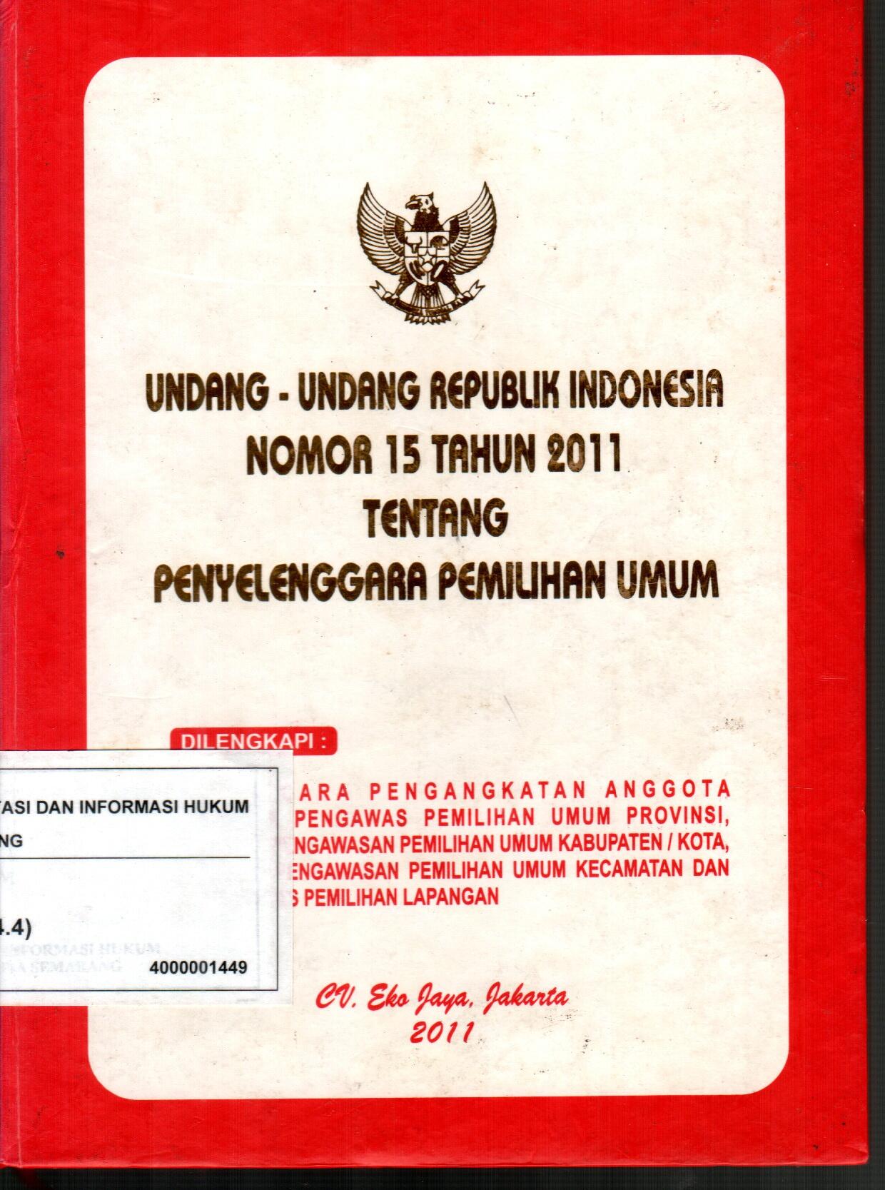 Undang-Undang Republik Indonesia Nomor 15 Tahun 2011 Tentang Penyelenggara Pemilihan Umum