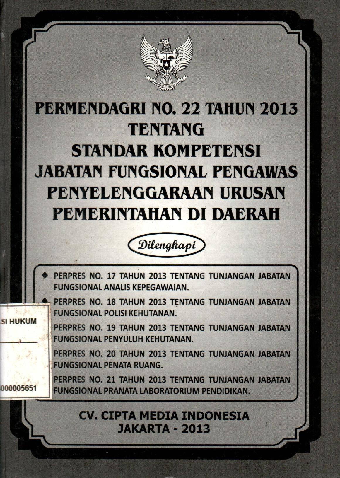 Pemendagri No. 22 Tahun 2013 Tentang Standar Kompetensi Jabatan Fungsional Pengawas Penyelenggaran Urusan Pemerintahan Di Daerah