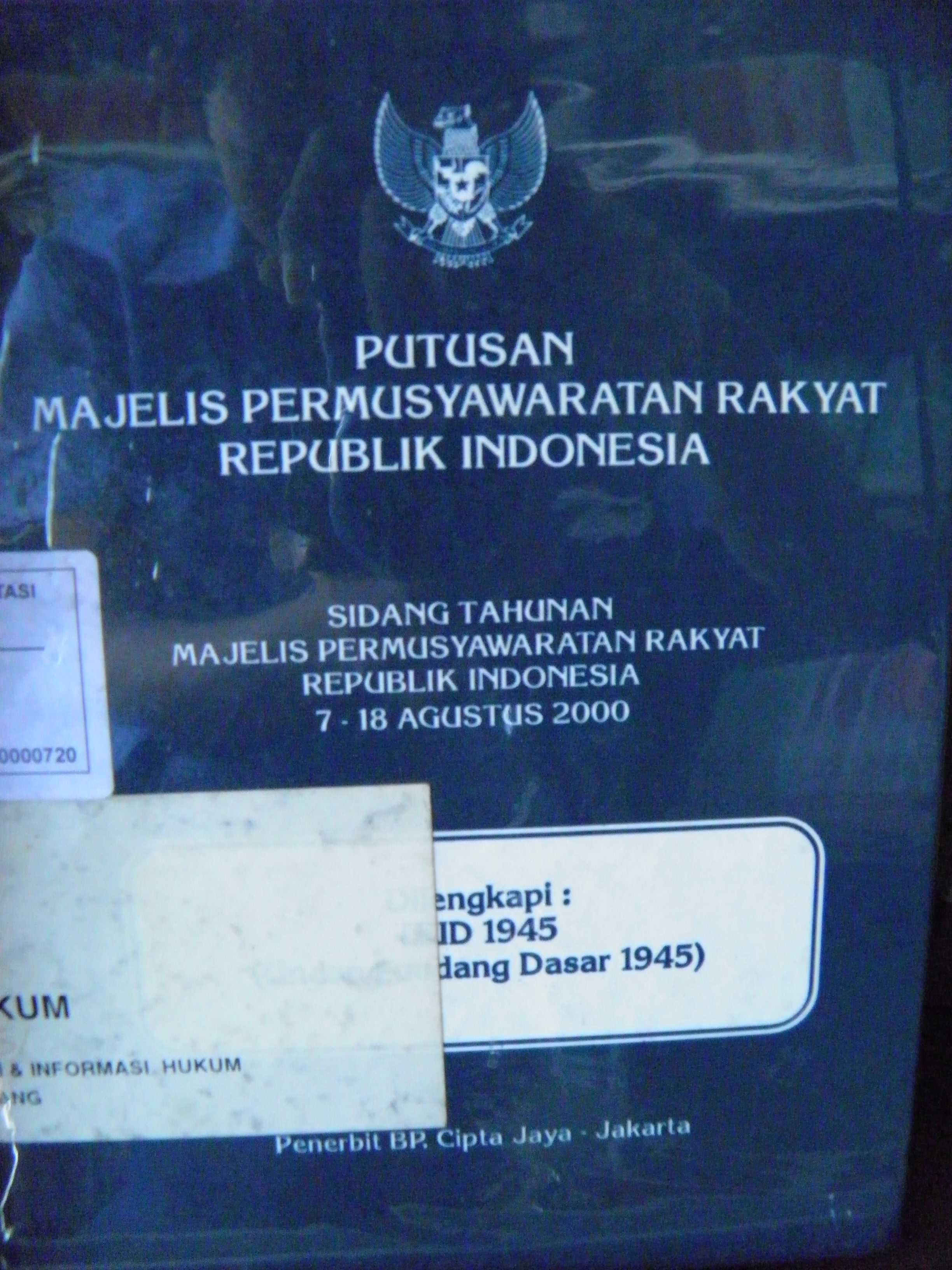 Putusan Majelis Permusyawaratan Rakyat Republik Indonesia Sidang Tahunan Majelis Permusyawaratan Rakyat Republik Indonesia 7-18 Agustus 2000