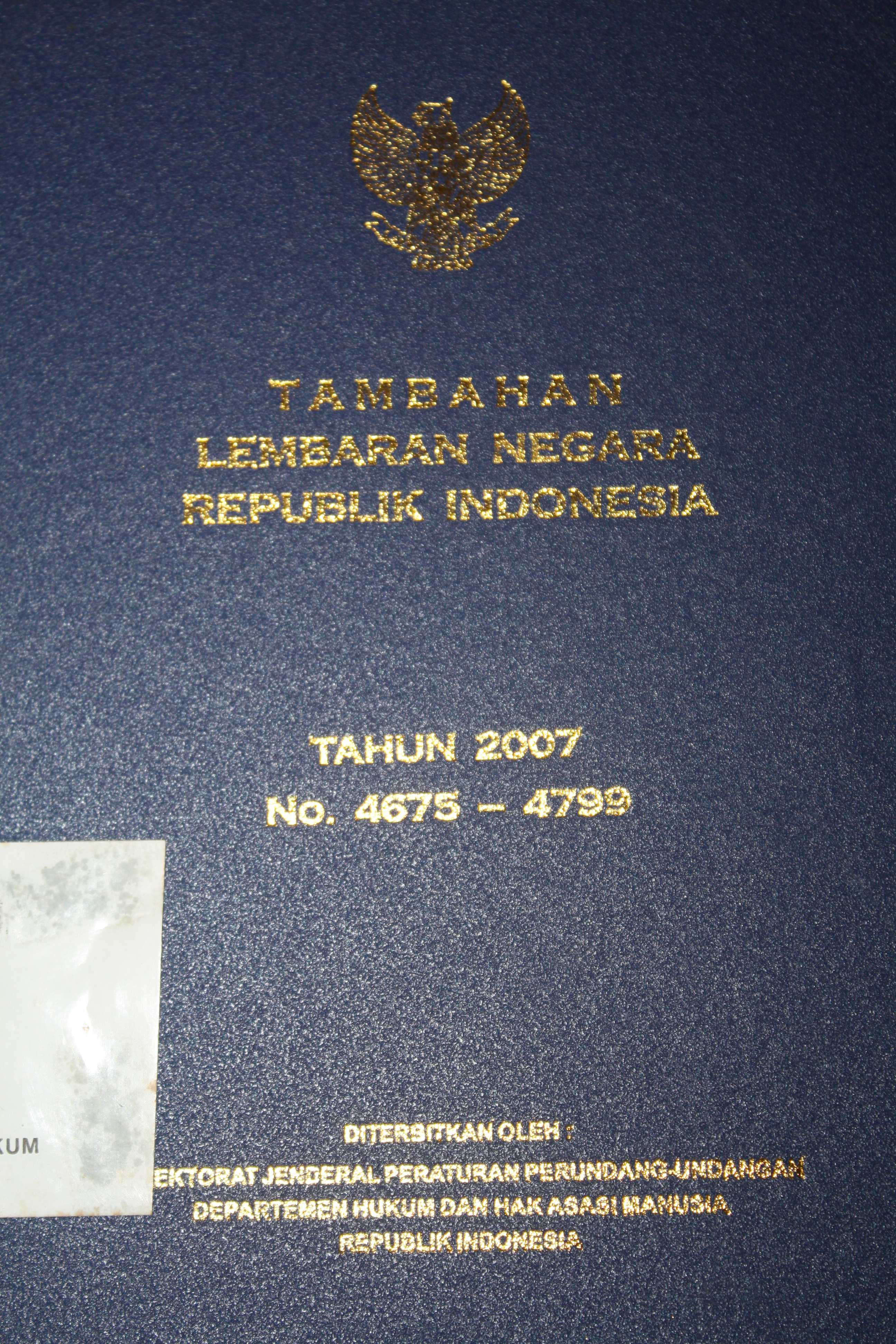Tambahan Lembaran Negara Republik Indonesia Tahun 2007 No. 4675 - 4799