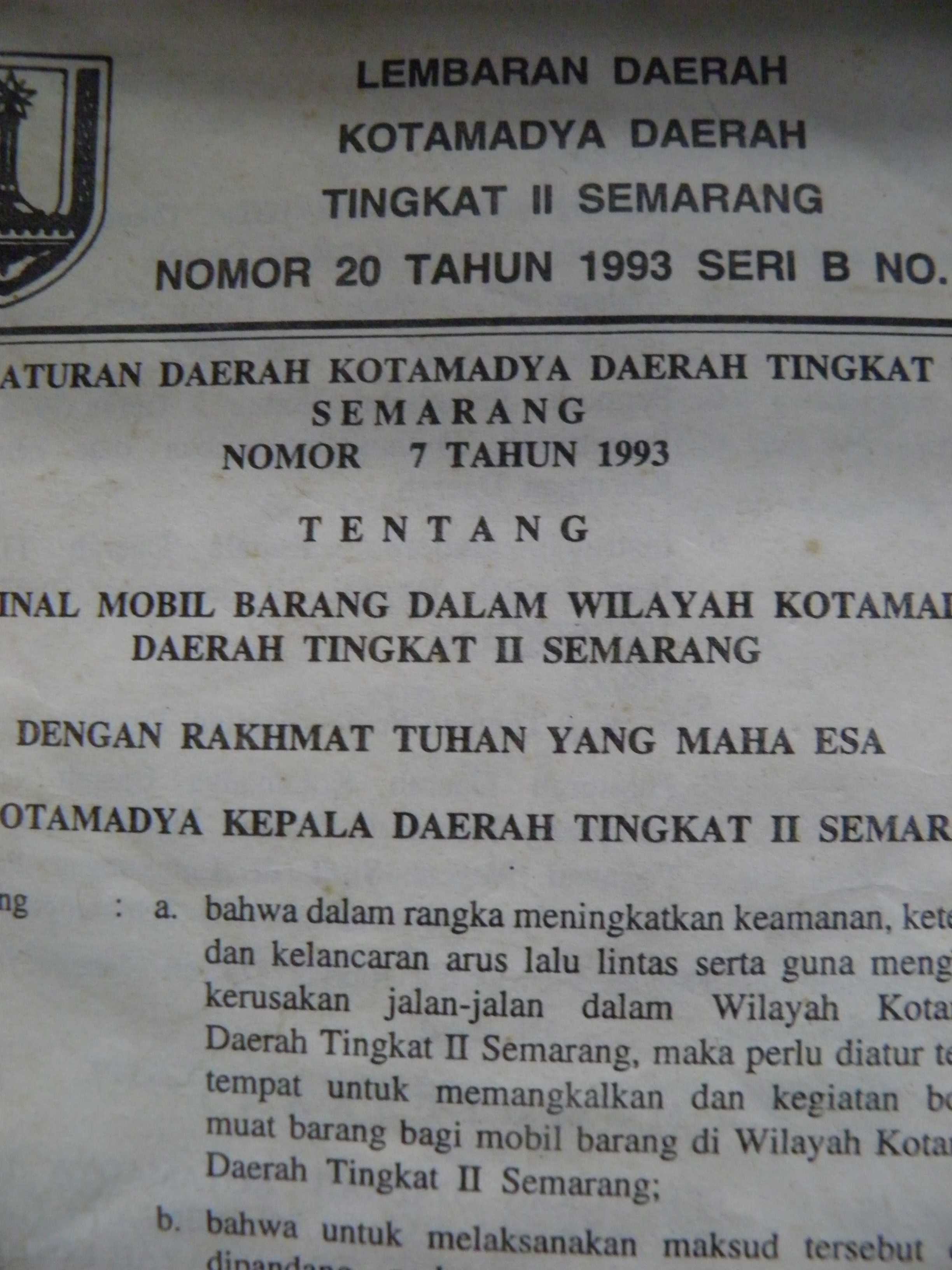 Peraturan Daerah Kotamadya Daerah Tingkat II Semarang Nomor : 8 Tahun 1993