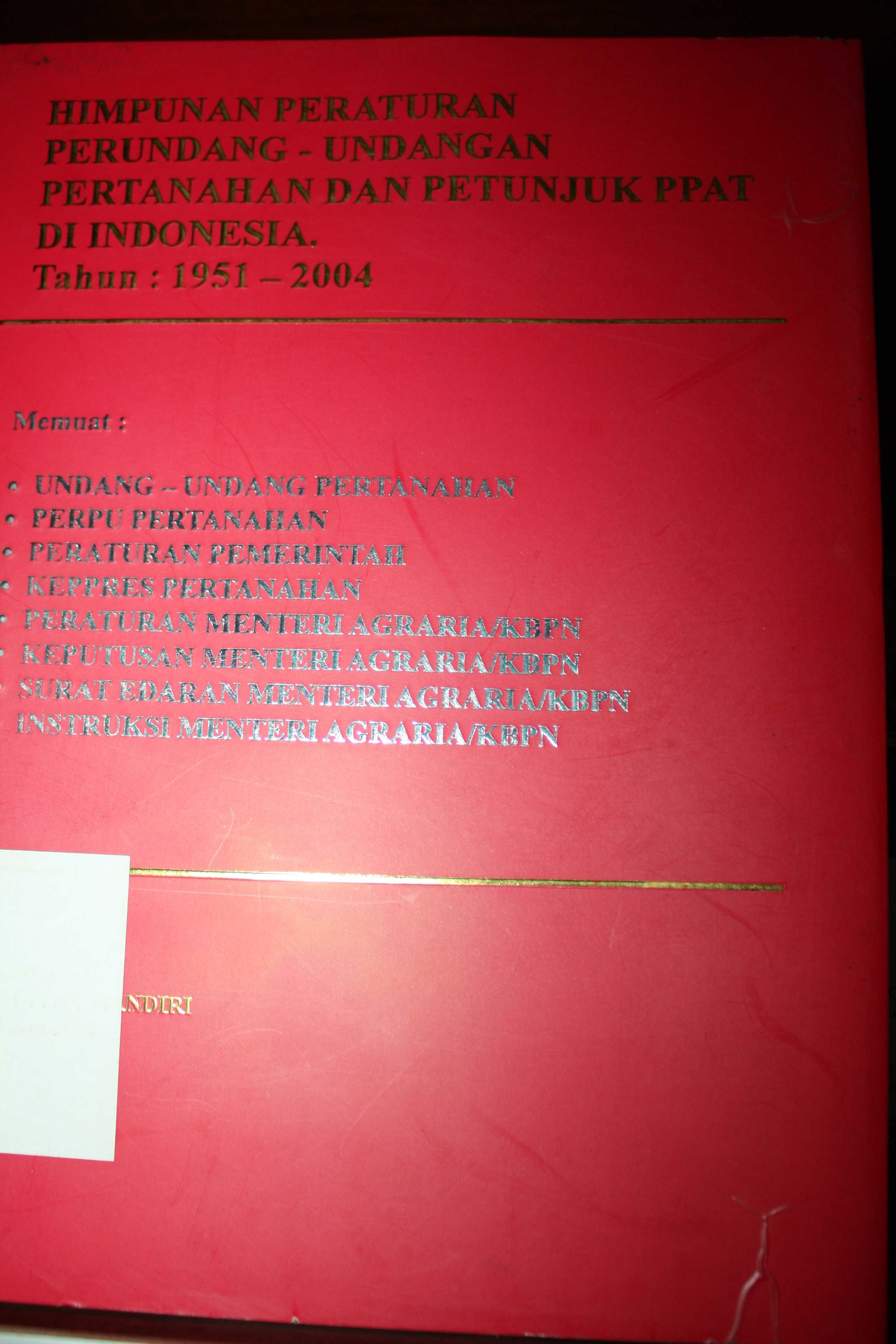 Himpunan peraturan perundang - undangan Pertanahan dan Petunjuk PPAT di Indonesia Tahun : 2004 - 2005