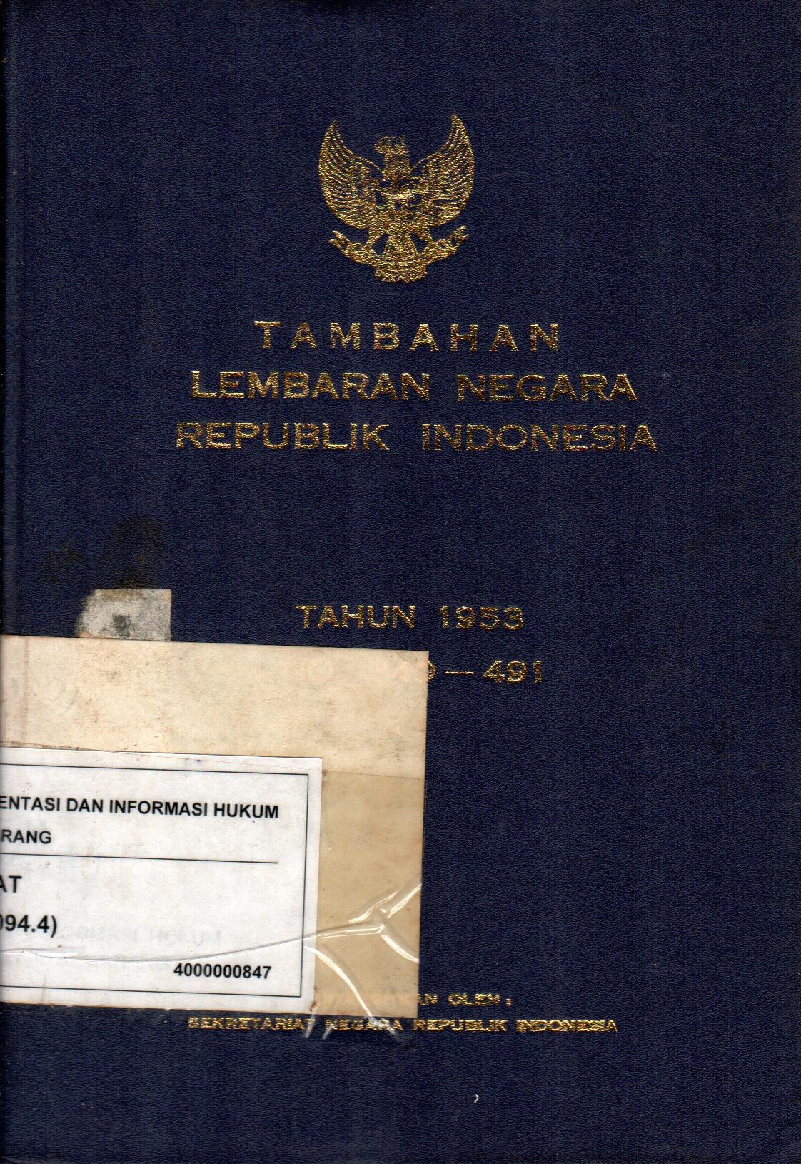 Tambahan Lembaran Negara Republik Indonesia Tahun 1953 No. 349 - 491
