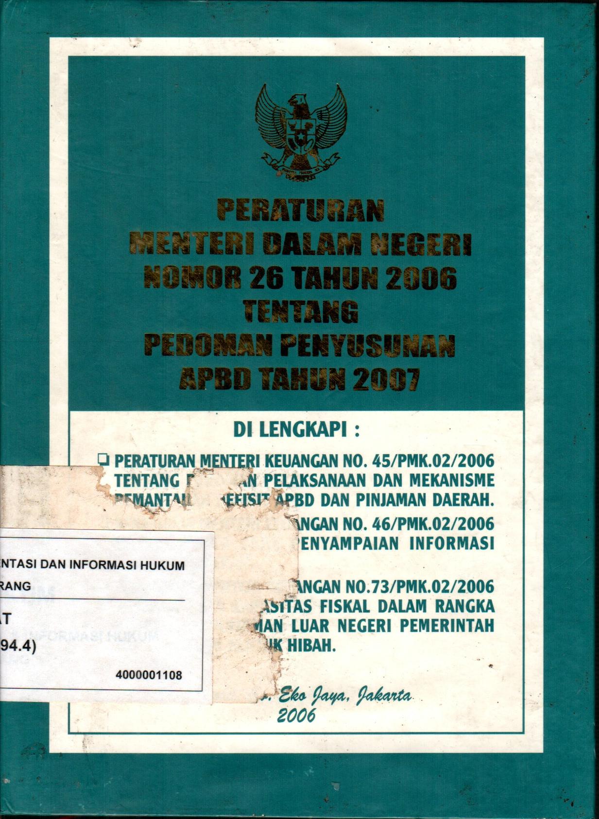 Peraturan Menteri Dalam Negeri Nomor 26 Tahun 2006 Tentang Pedoman Penyusunan APBD Tahun 2007