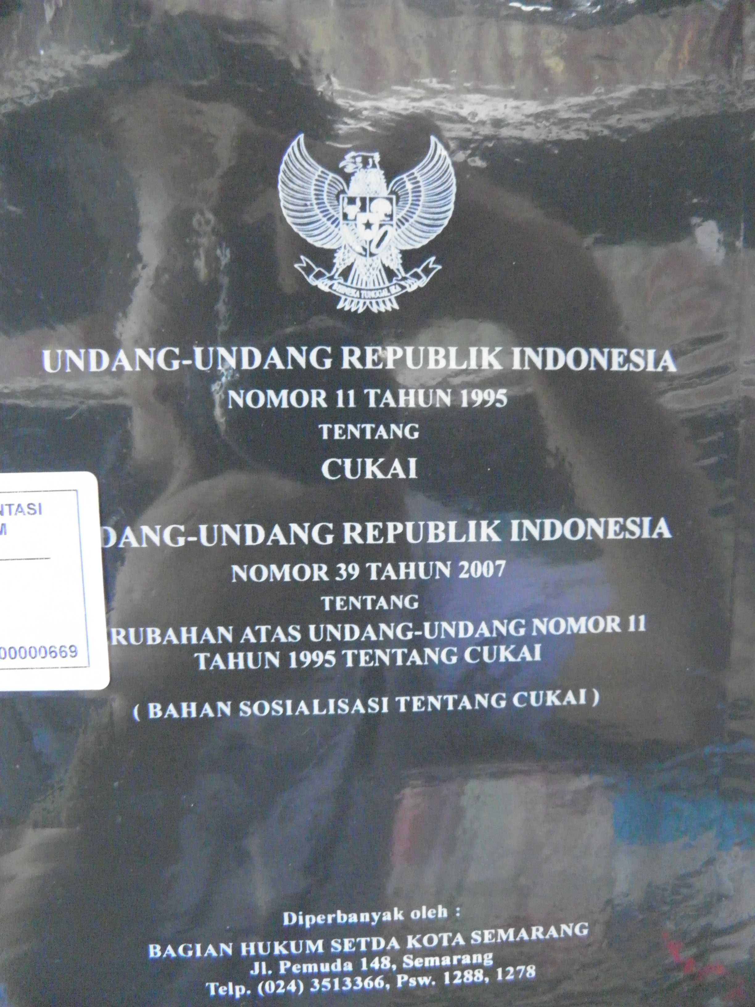 Undang Undang Repoblik Indonesia Nomor 11 Tahun 1995 Tentang Cukai Undang - Undang Republik Indonesia Nomor 39 Tahun 2007 Tentang Perubahan Atas Undang - Undang Nomor 11 Tahun 1995 Tentang Cukai