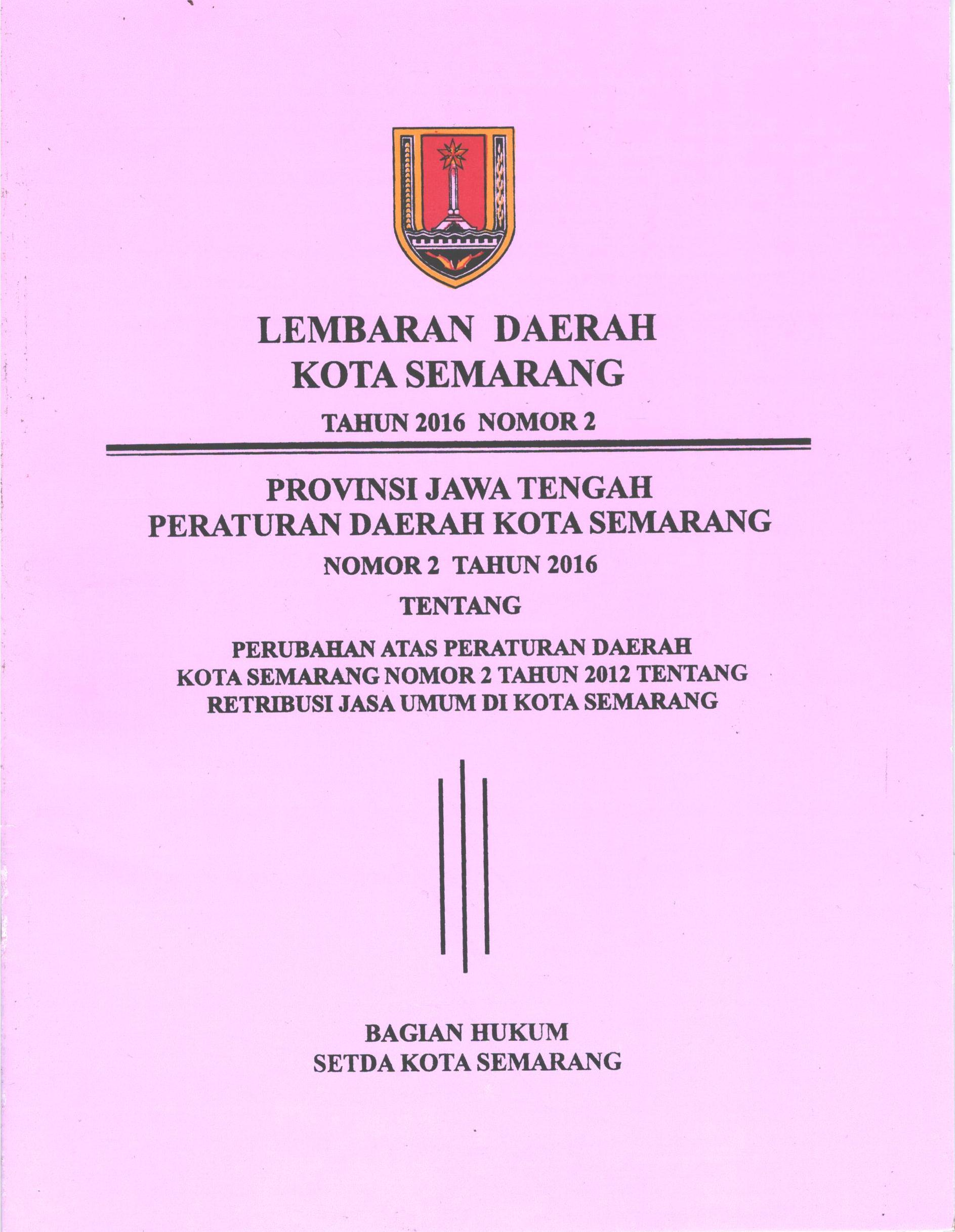 Peraturan Daerah Kota Semarang No 2 Tahun 2016 Tentang Perubahan Atas Peraturan Daerah Kota Semarang Nomor 2 Tahun 2012 Tentang Retribusi Jasa Umum di Kota Semarang
