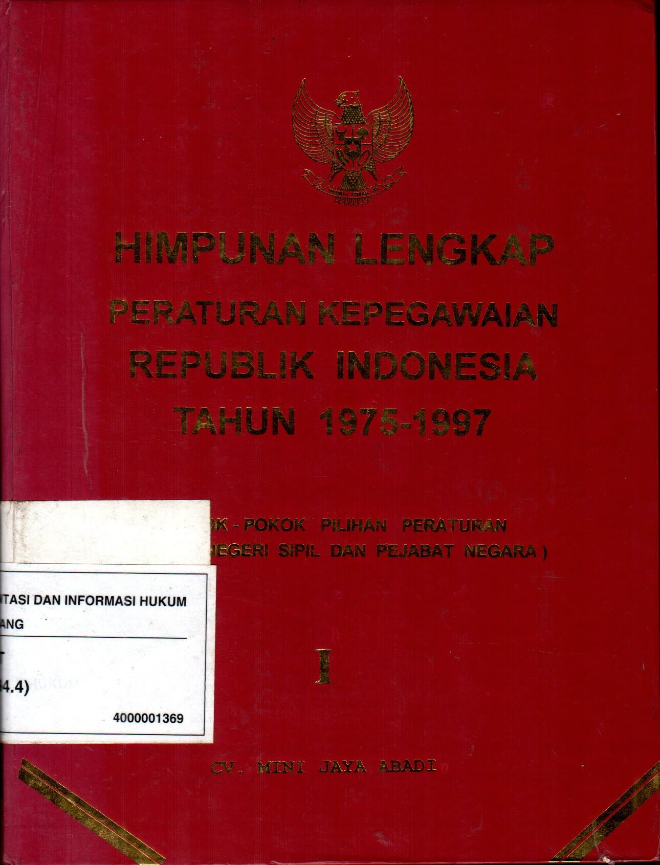 Himpunan Lengkap Peraturan kepegawaian Republik Indonesia Tahun 1975-1997 I