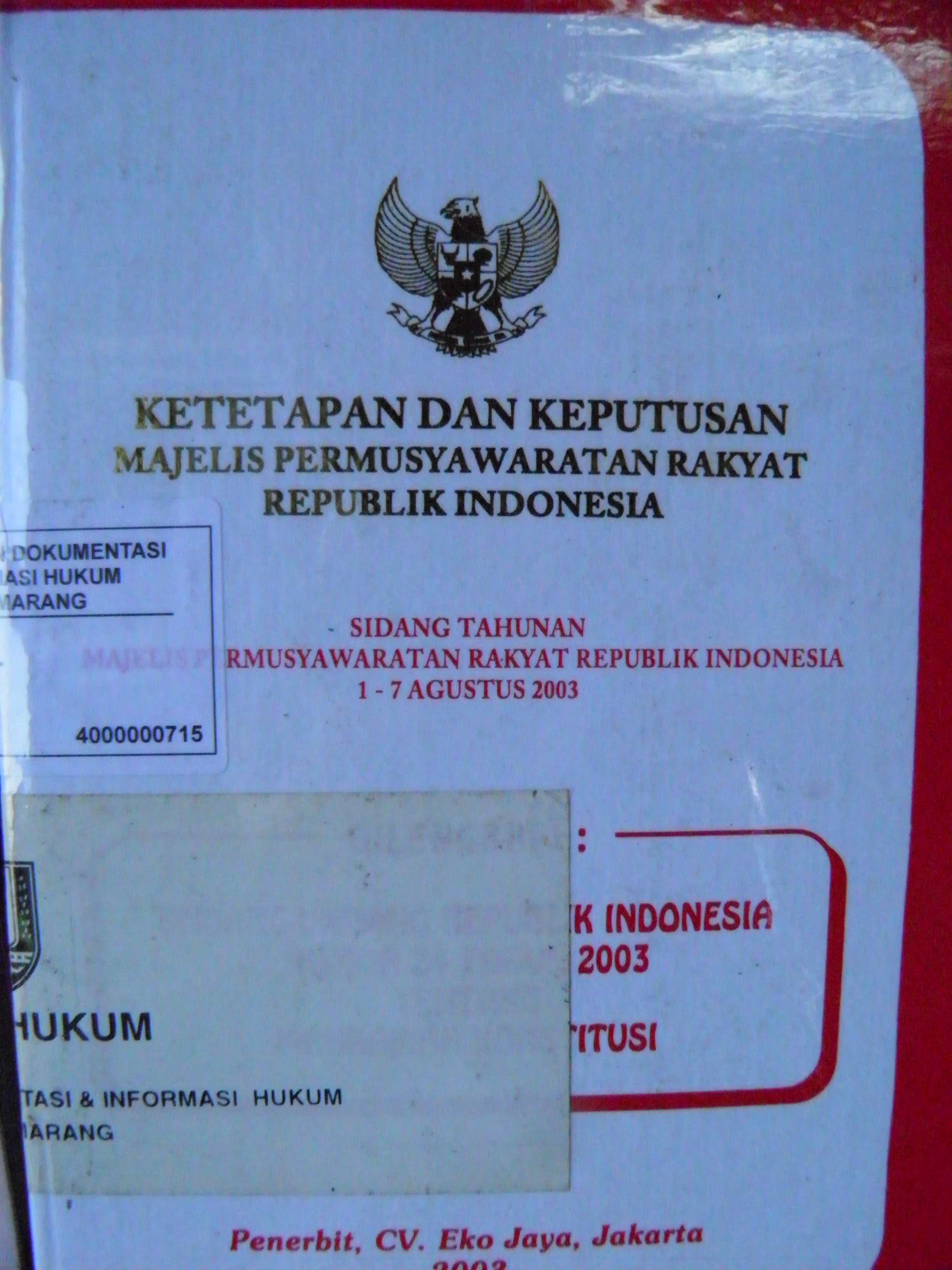 Ketetapan dan Keputusan Majelis Permusyawaratan Rakyat Republik Indonesia . Sidang Majelis Permusyawaratan Rakyat Republik Indonesia 1-7 Agustus 2003